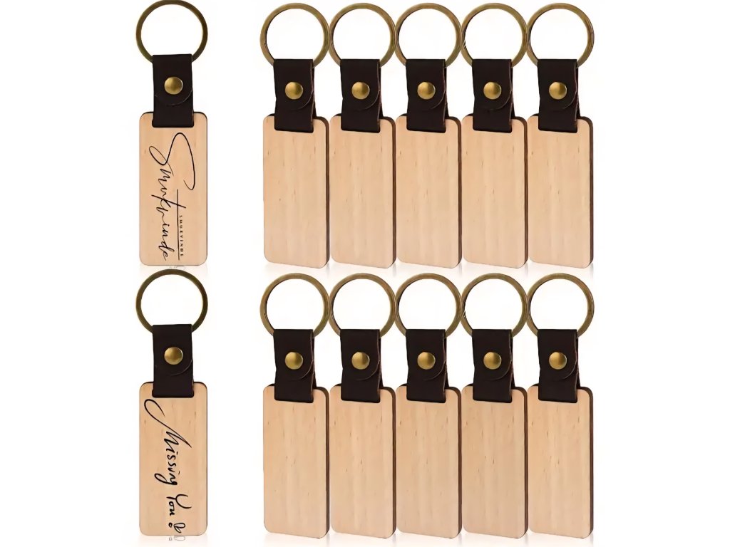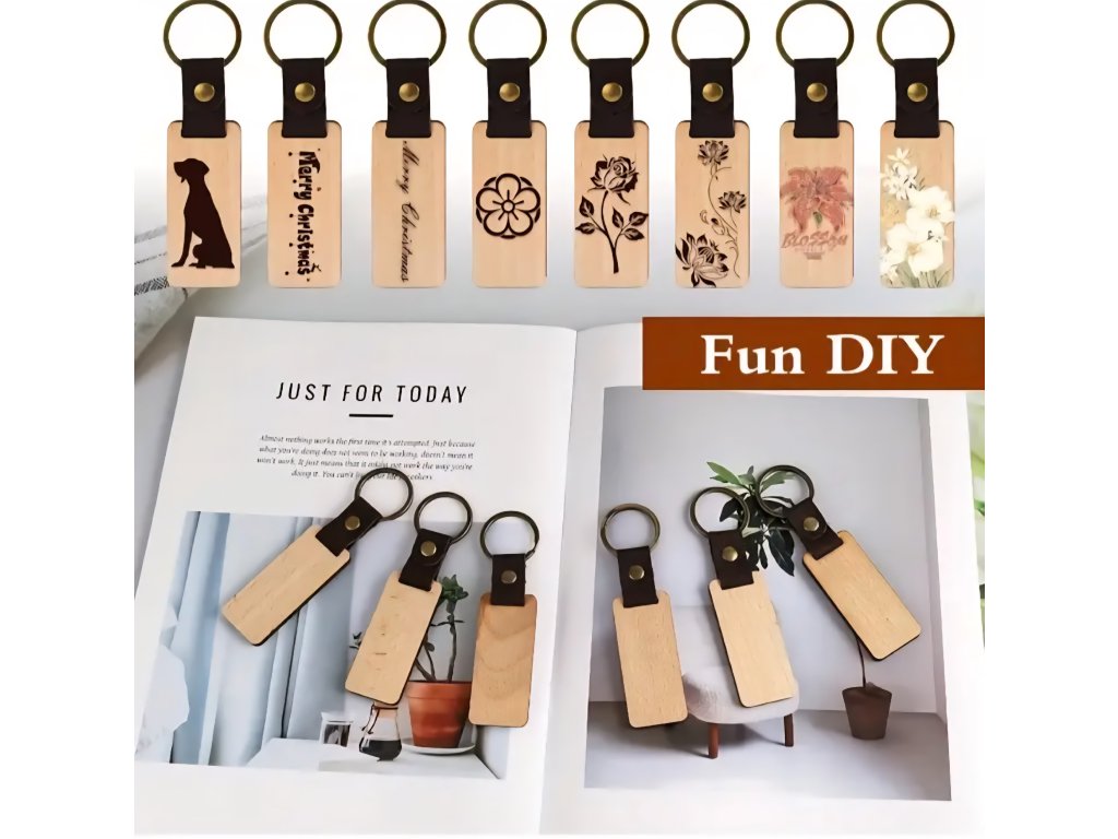 Popis: Hledáte dárek, který je osobní, stylový a vyrobený z přírodních materiálů? Naše dřevěná klíčenka je přesně taková. Kombinace hladce opracovaného dřeva, elegantního koženkového pásku a masivního kovového kroužku vytváří doplněk, který potěší. Pomocí precizního laserového gravírování na ni přeneseme váš vlastní design, text, logo nebo jednoduchý obrázek a vytvoříme tak skutečný originál.