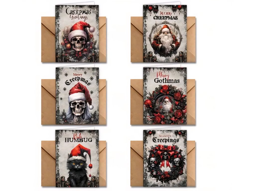 Už vás nudí přeslazená vánoční klišé plná sobů, sněhuláků a třpytek? Popřejte svým blízkým veselé svátky trochu jinak – s dávkou temné elegance, gotického stylu a černého humoru! Naše jedinečná kolekce přání "Creepmas" je perfektní pro všechny, kteří si i o Vánocích chtějí zachovat svůj alternativní styl.