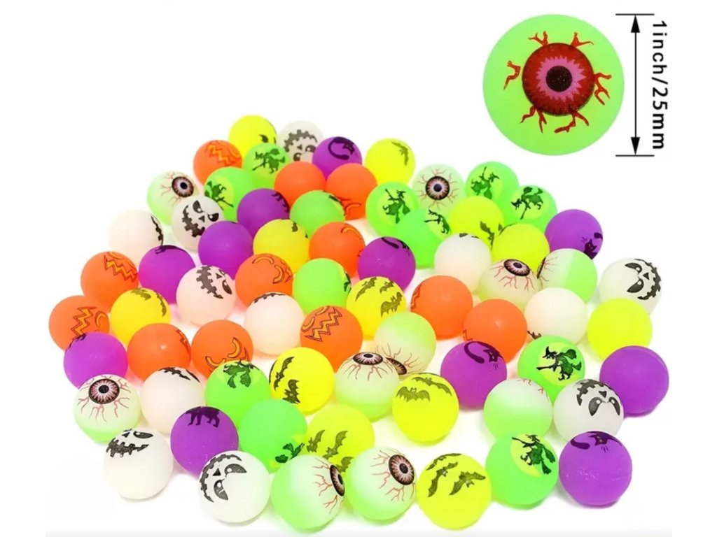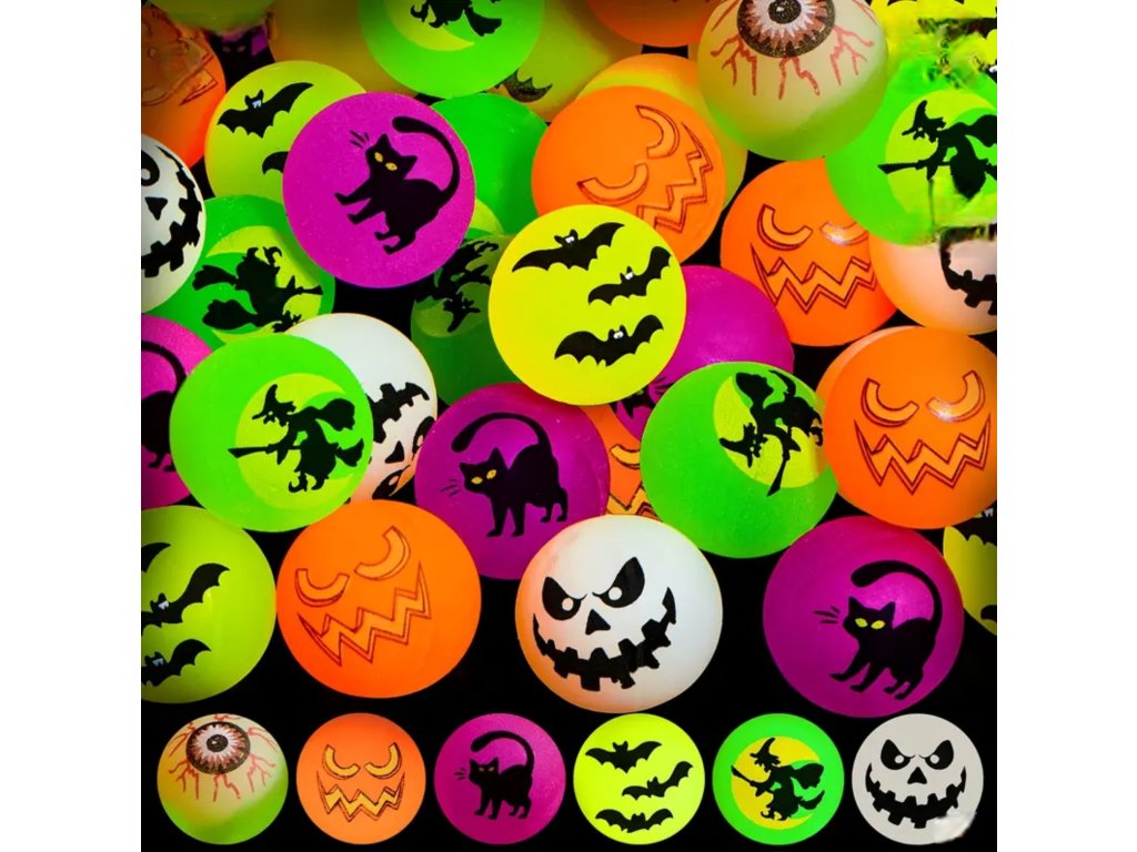 Dodejte své halloweenské oslavě tu správnou strašidelnou atmosféru! Tyto malé skákací míčky (hopíky) o průměru 25 mm jsou perfektní drobnou hračkou, která zaručeně potěší. Každý míček má vysoký odskok a zdobí ho jeden z mnoha halloweenských motivů – od strašidelných dýní a netopýrů až po černé kočky a krvavé oči. Ideální jako výslužka na párty, odměna za koledování nebo pro naplnění piñaty.