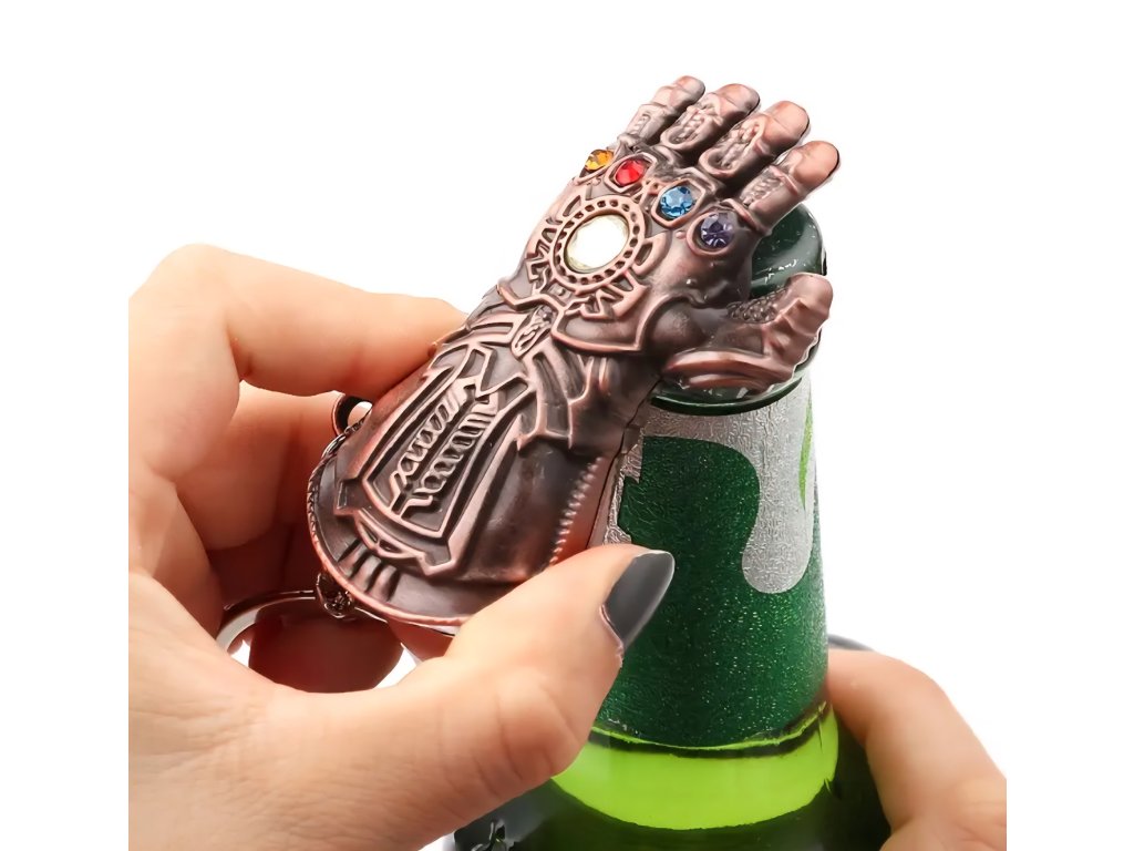 Ovládněte sílu všech šesti kamenů nekonečna... a otevřete si k tomu vychlazenou lahev! Tento masivní a detailně zpracovaný přívěsek ve tvaru Thanosovy Rukavice nekonečna je víc než jen klíčenka – je to stylový otvírák na lahve a naprosto nezbytný doplněk pro každého fanouška světa Marvel.
