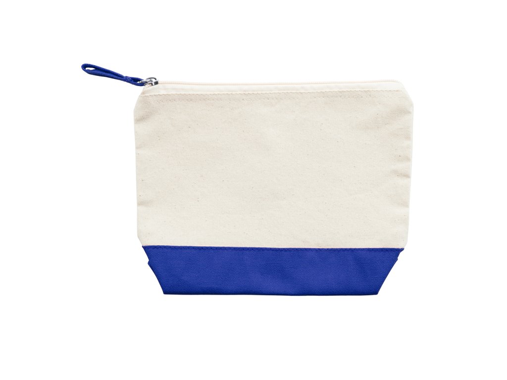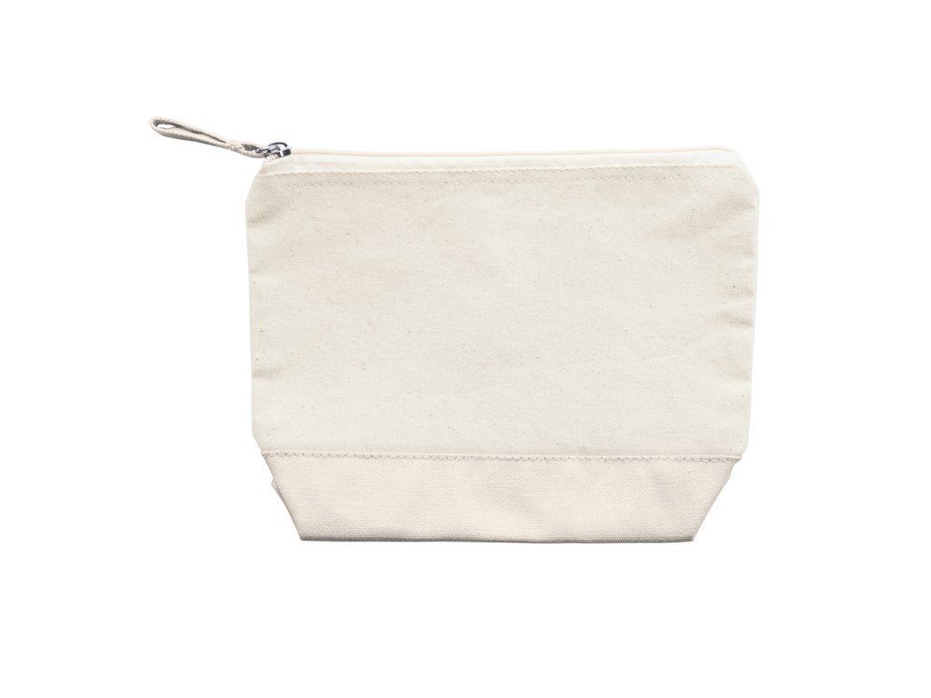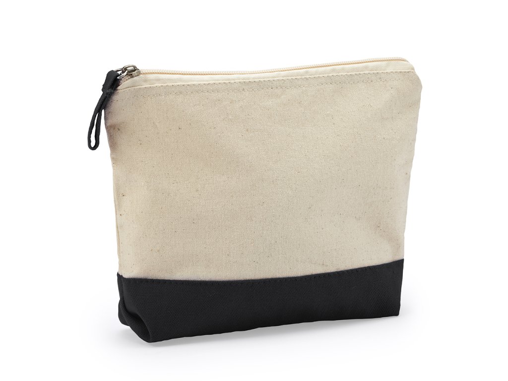 Víceúčelová toaletní taška z bavlny o gramáži 280 g/m² ve dvoubarevném provedení. Zapínání na zip s odpovídajícím bavlněným taháčkem.