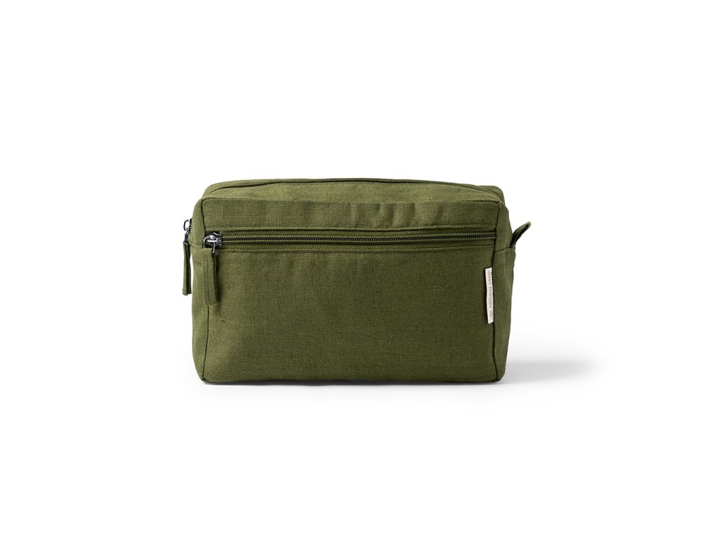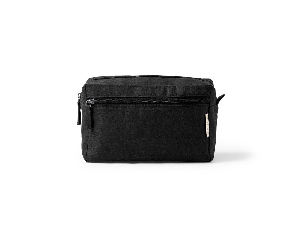 Multifunkční toaletní taška ze 100 % konopné tkaniny (200 g/m²), s odpovídajícím stahovacím páskem.