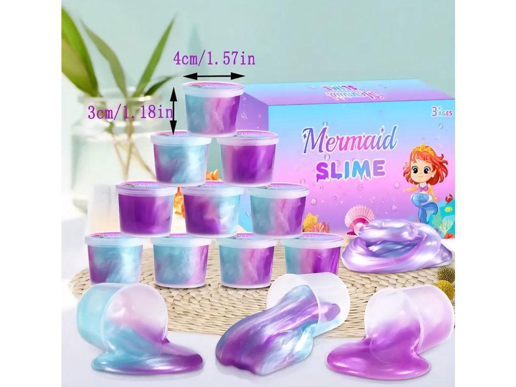 Ponořte se do kouzelného podmořského světa s naším slizem Mořská panna! Tento nádherný, třpytivý sliz je jako kousek oceánu v kelímku. Jeho okouzlující barvy a perleťový lesk připomínají ocas mořské panny a zvou všechny malé objevitele k hodinám kreativní a smyslové zábavy.