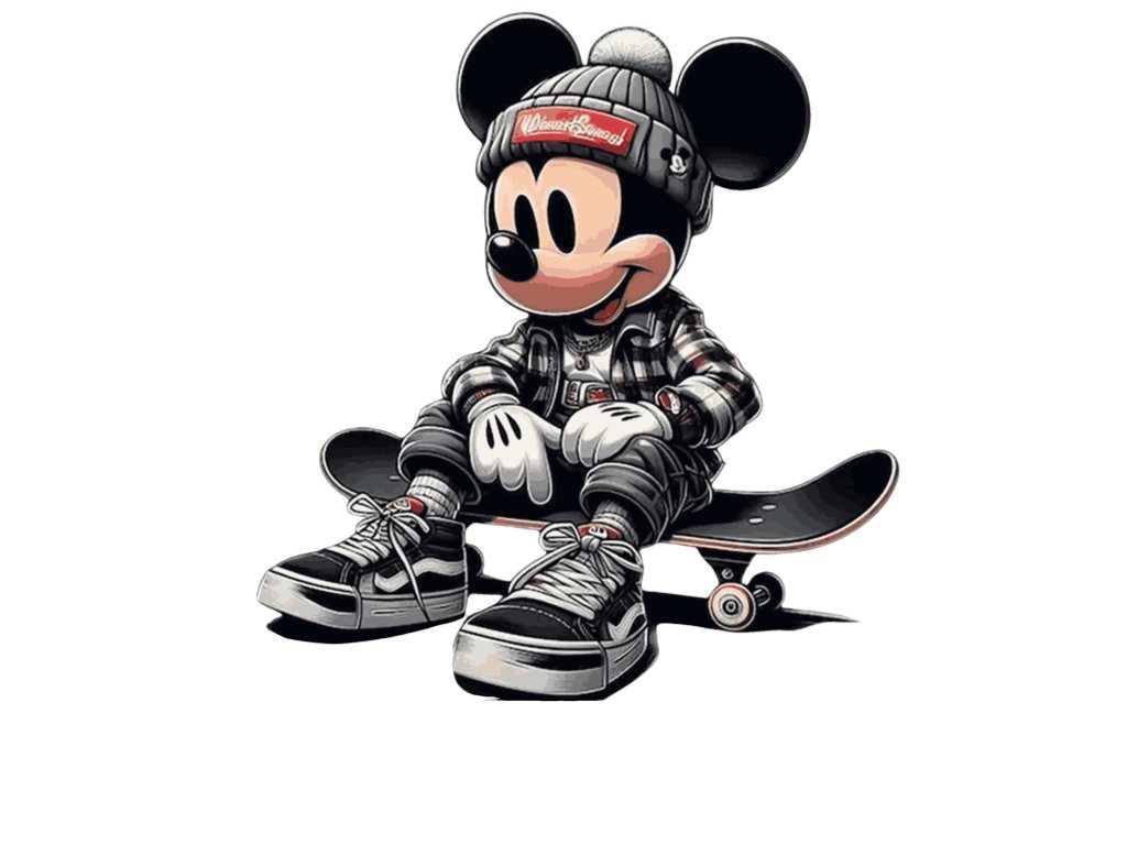 Stylové triko s Mickey Mousem na skateboardu – pro všechny, kteří milují kombinaci klasiky a moderního street stylu. Perfektní kousek do šatníku!