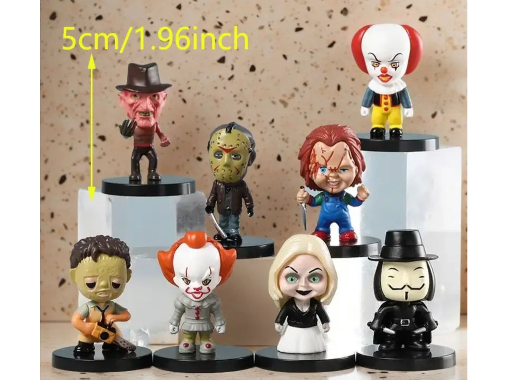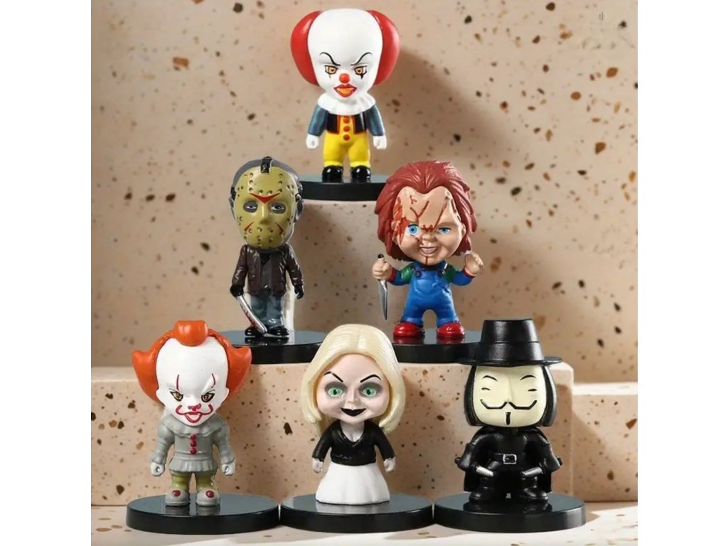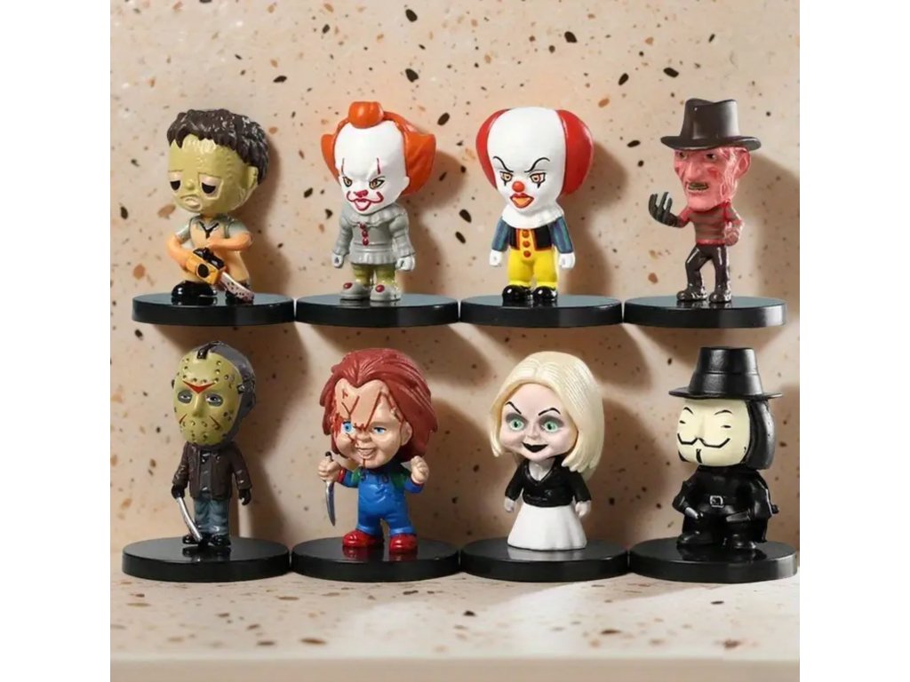 Vaše oblíbené noční můry v roztomilém, ale strašidelném provedení! Tyto sběratelské mini figurky o výšce cca 5 cm přinášejí nejslavnější postavy z hororových filmů ve stylovém chibi designu. Každá figurka stojí na vlastním podstavci a je perfektním doplňkem na poličku každého fanouška hororu.
