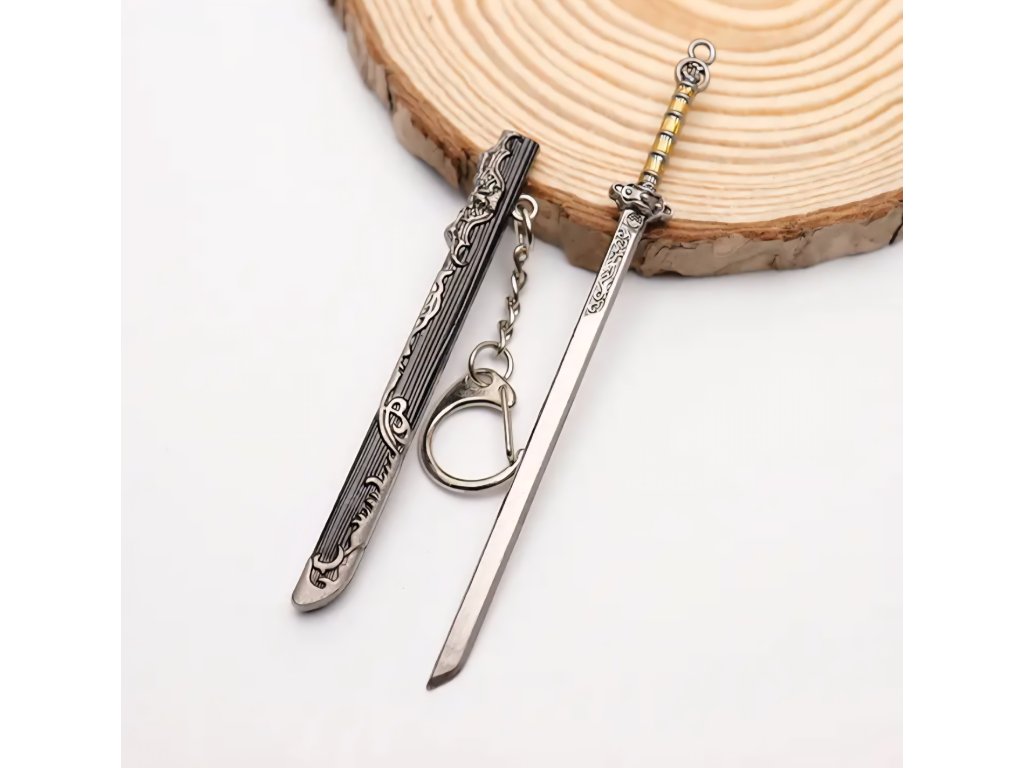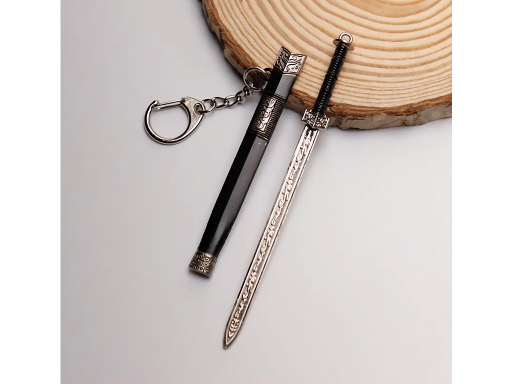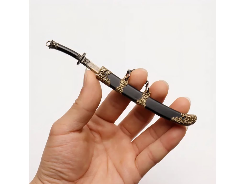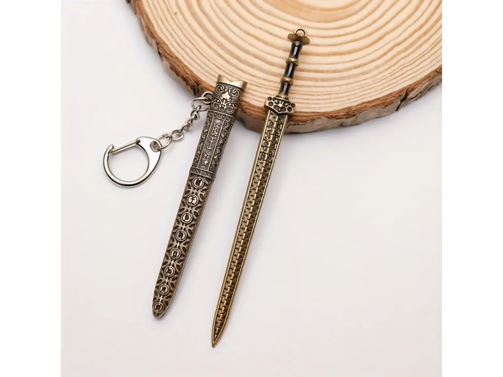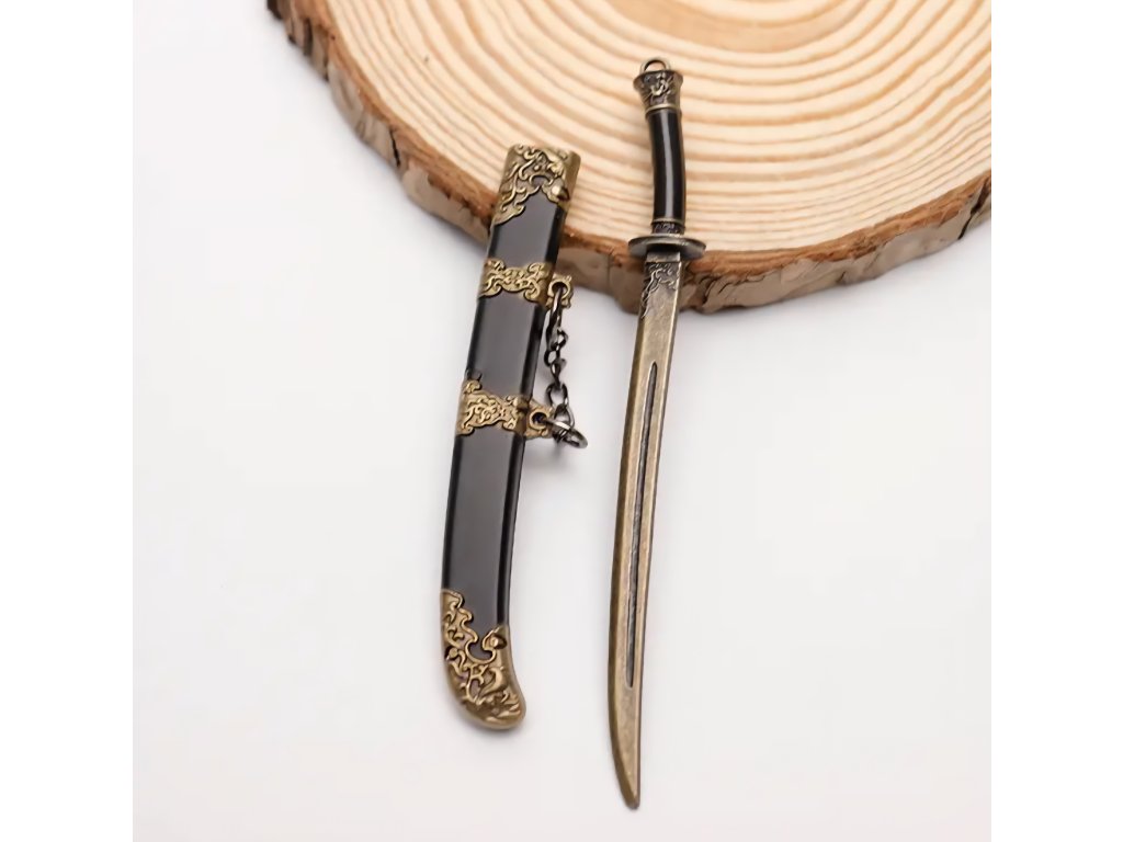 Elegantní kolekce miniaturních mečů s asijskými/čínskými historickými motivy. Tyto meče slouží jako přívěsky na klíče a obsahují detailní pochvu (pouzdro), ze které lze meč vytáhnout. Jsou vyrobeny z kovu a zdobeny ornamenty, které napodobují styl katany, dao nebo jian mečů, často s patinovanou starožitnou úpravou.
