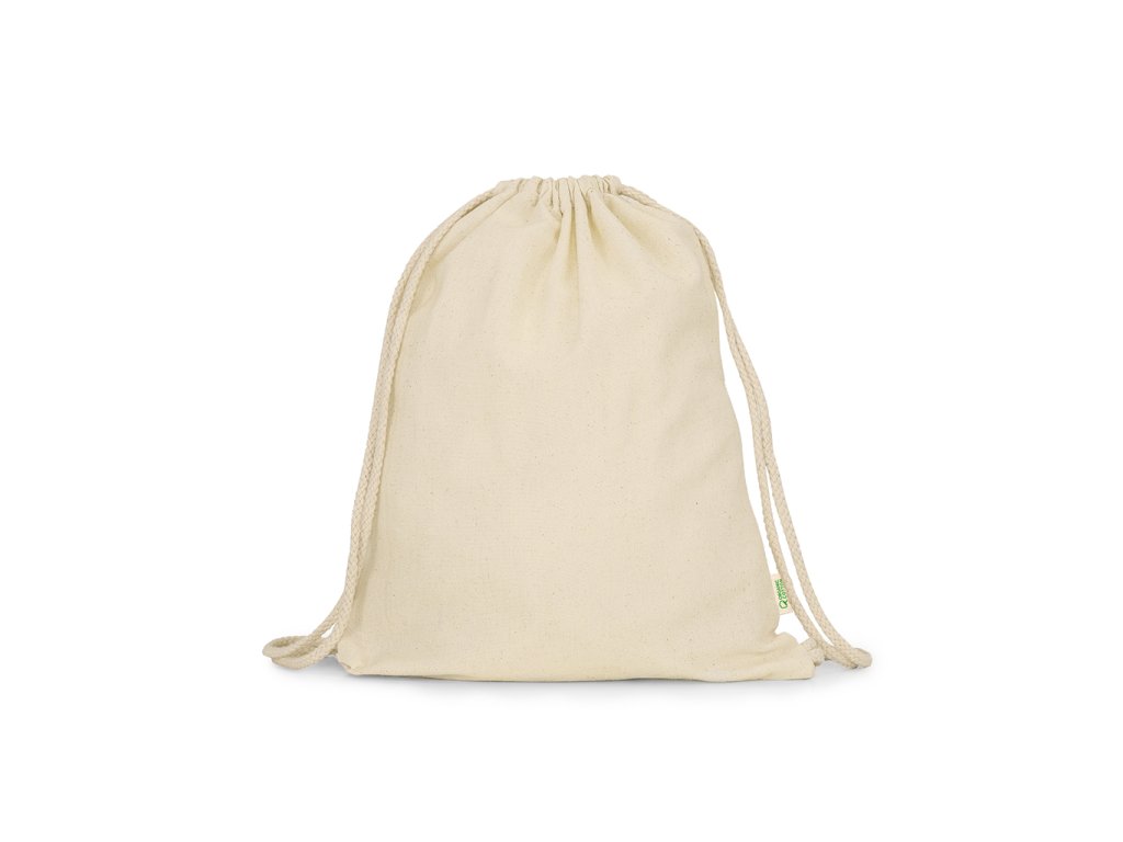 Batoh se stahovací šňůrkou ze 100% organické bavlny.