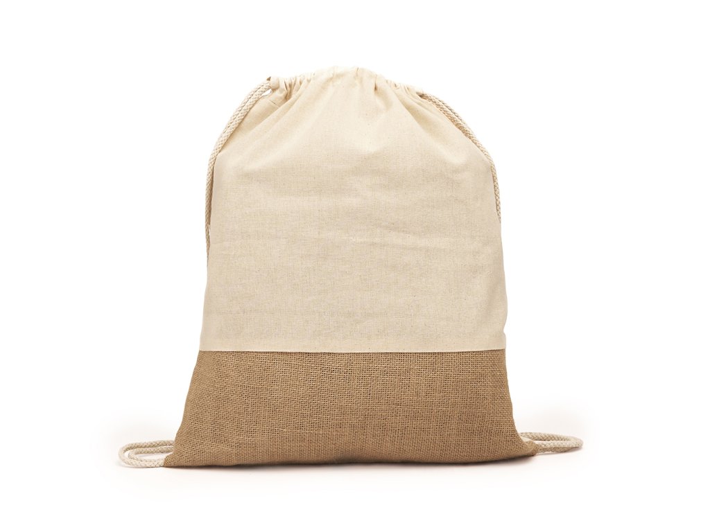 Batůžek se stahovací šňůrkou vyrobený z bavlny a juty o gramáži 120 g/m².