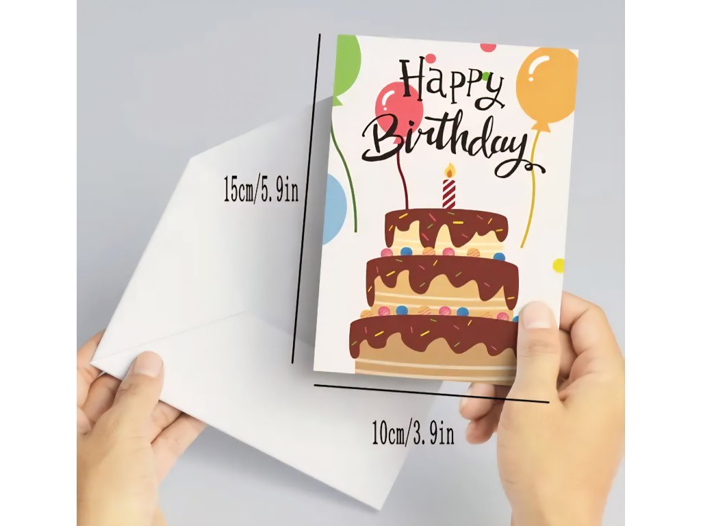 Standardní velikost: Rozměr složeného přání je 15 x 10 cm.