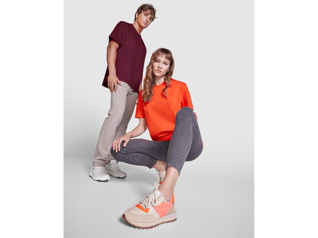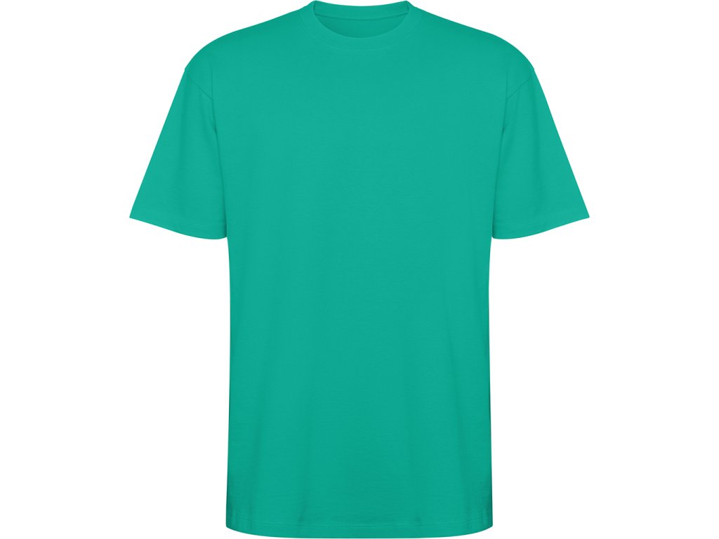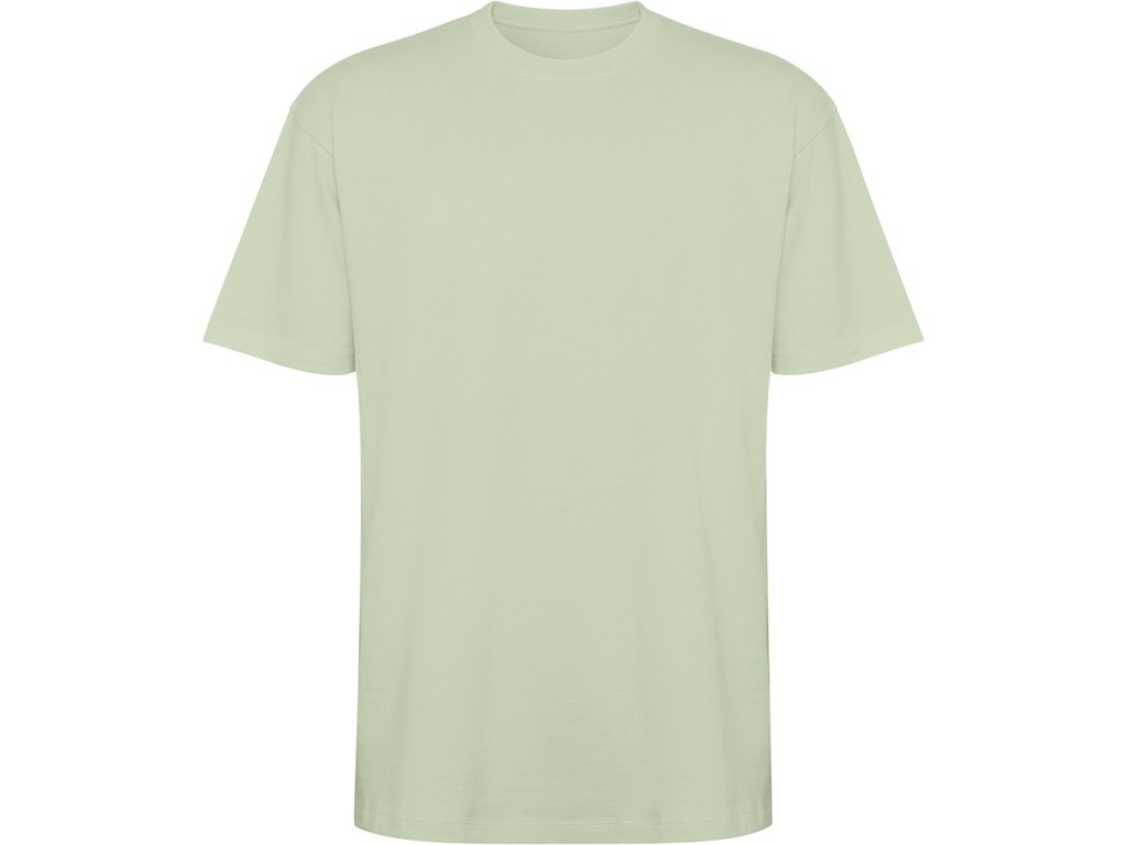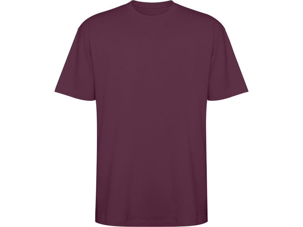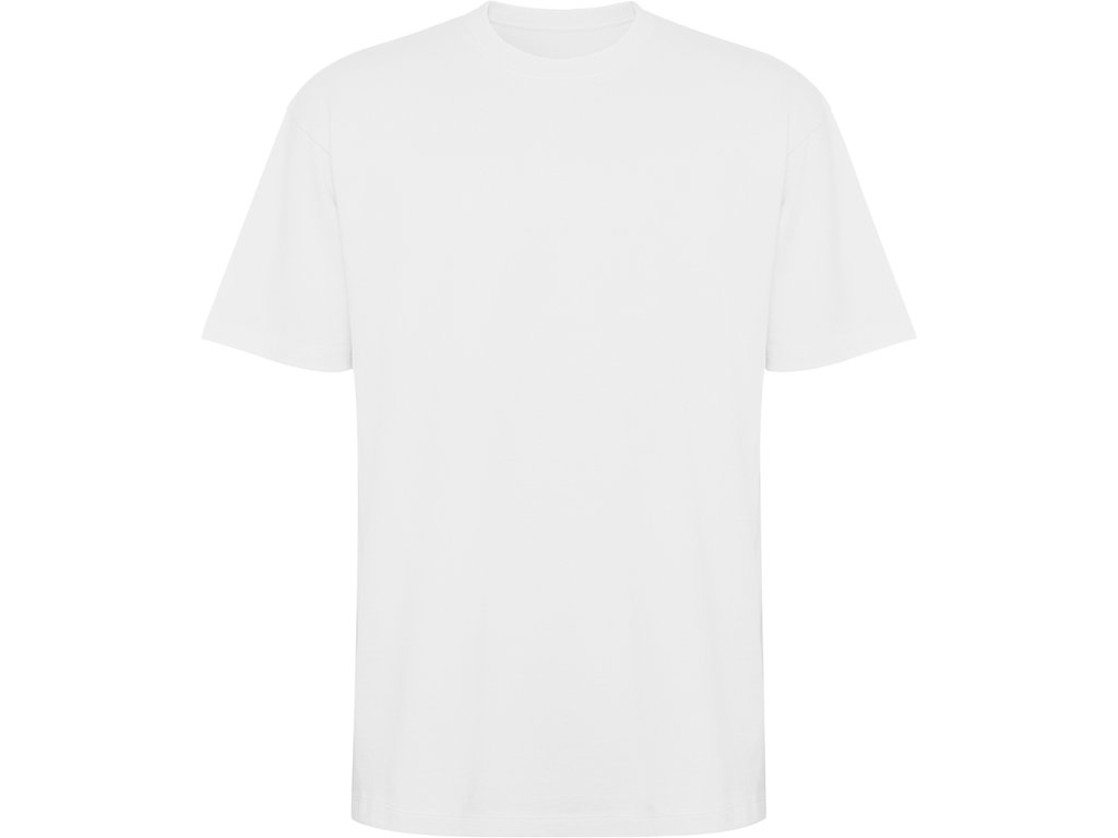 Tričko s krátkým rukávem v nadměrné velikosti. Okrouhlý límec lemovaný 2x1 žebrováním s odpovídajícími kryty švů. Boční švy. Široké dvojité prošití na rukávech a spodním lemu.
