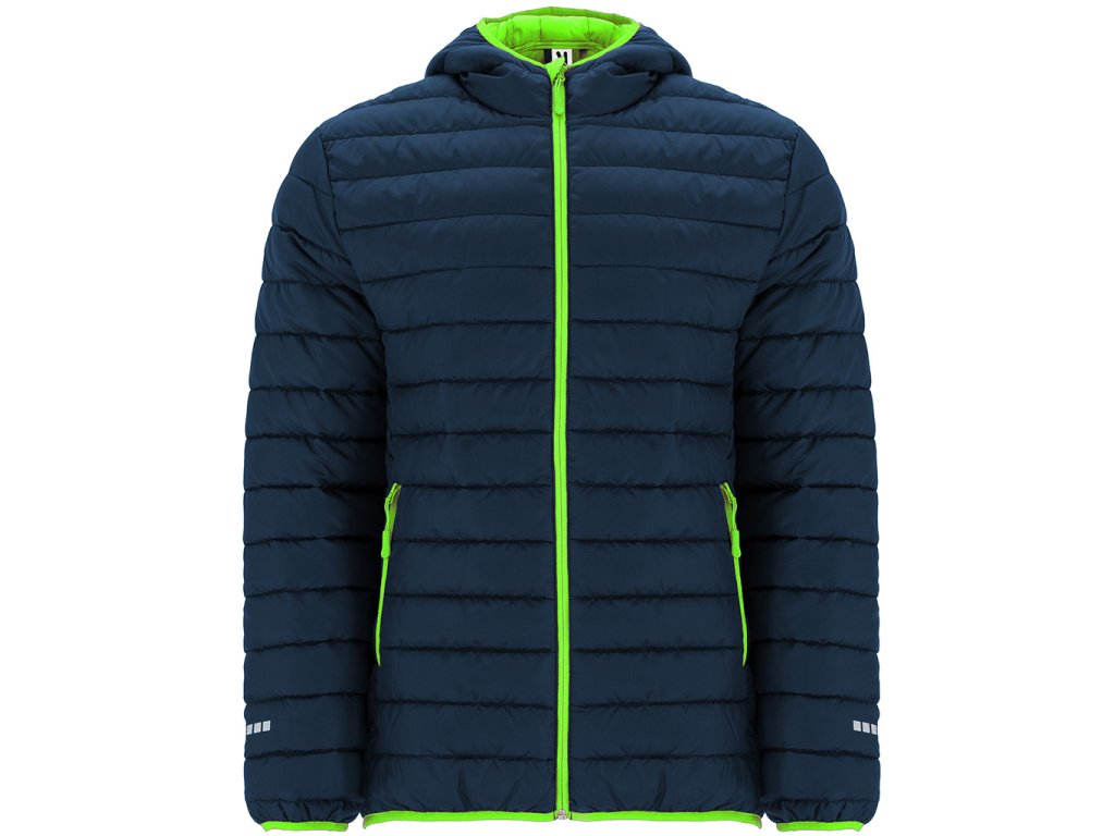 Pánská/dětská sportovní prošívaná bunda s výplní s péřovým efektem. Obrácený zip v kontrastní kombinaci s ochranou pro bradu a poutkem. Napevno přišitá padnoucí kapuce. Kontrastní postranní kapsy s obráceným zipem a poutkem. Reflexní detaily na rukávech a zadním díle. Střih lemu o 4 cm delší než u modelu NORWAY. Kapuce, manžety a spodní lem s elastickou kontrastní obrubou. Součástí přepravní taštička. Odnímatelný štítek. Model odolný proti větru. Nepromokavý. Vnější strana: 100% polyester, 300T. Podšívka: 100% polyester. Vatelín: 100% polyester, s péřovým efektem.