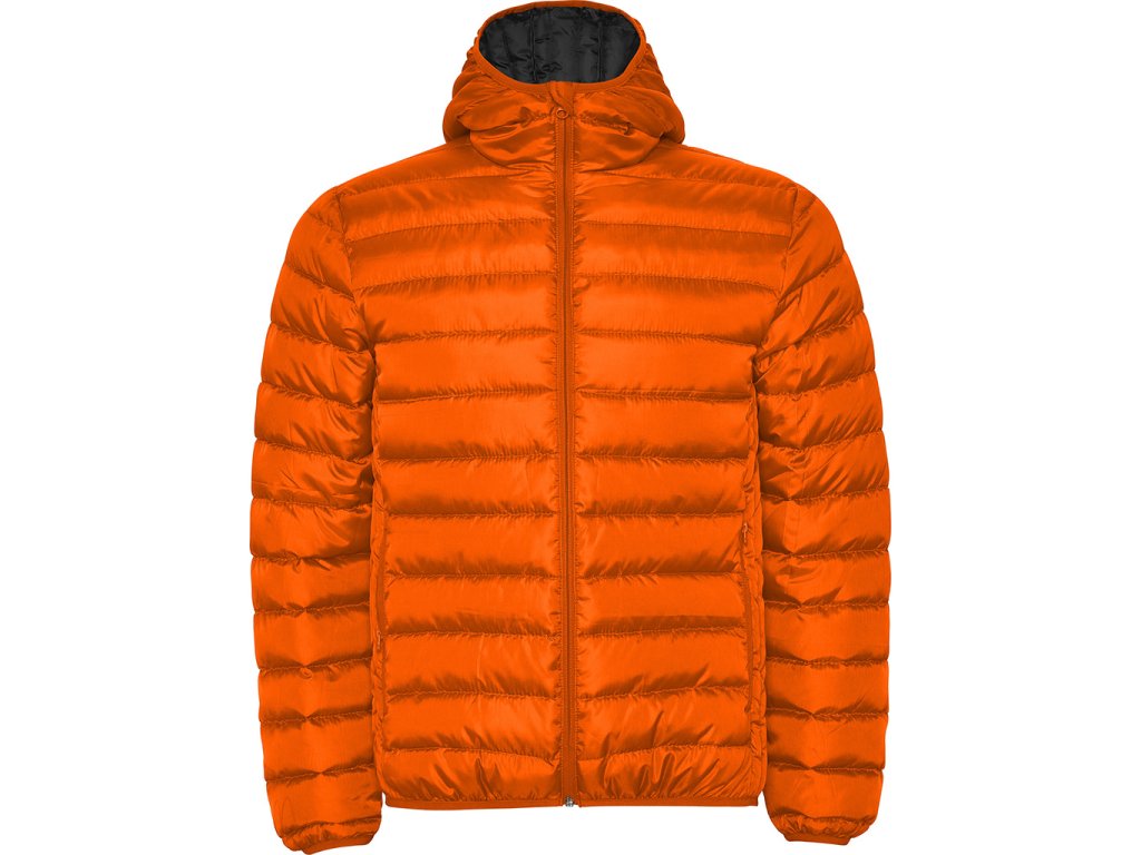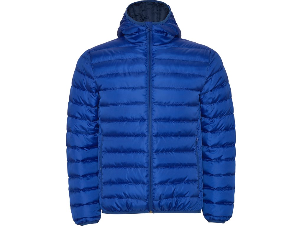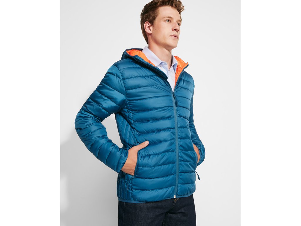 Prošívaná bunda s kapucí. Větru a voděvzdorný materiál. Má celopropínací zip s krytkou jezdce, dvě boční kapsy na zip, lemování kapuce, manžety a spodní lem ve stejném tónu. Podšívka je v kontrastní barvě. Lehký oděv s možností složení.