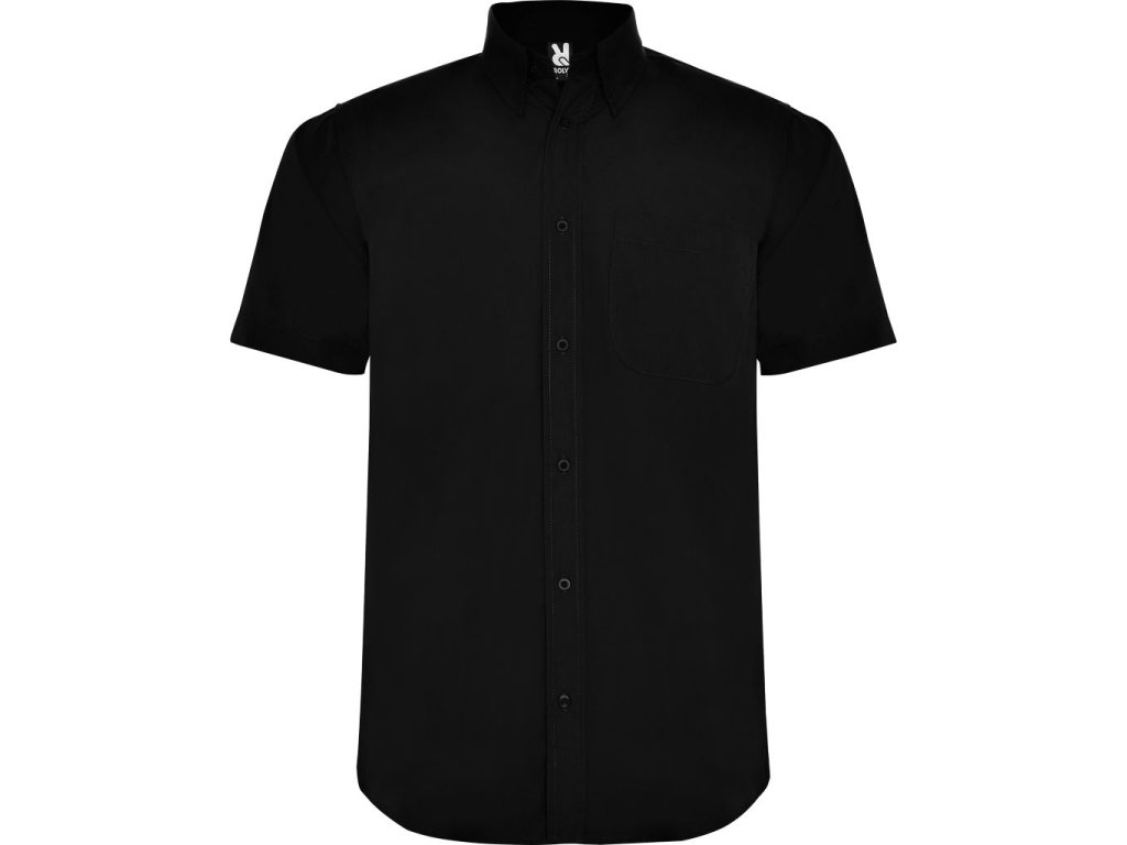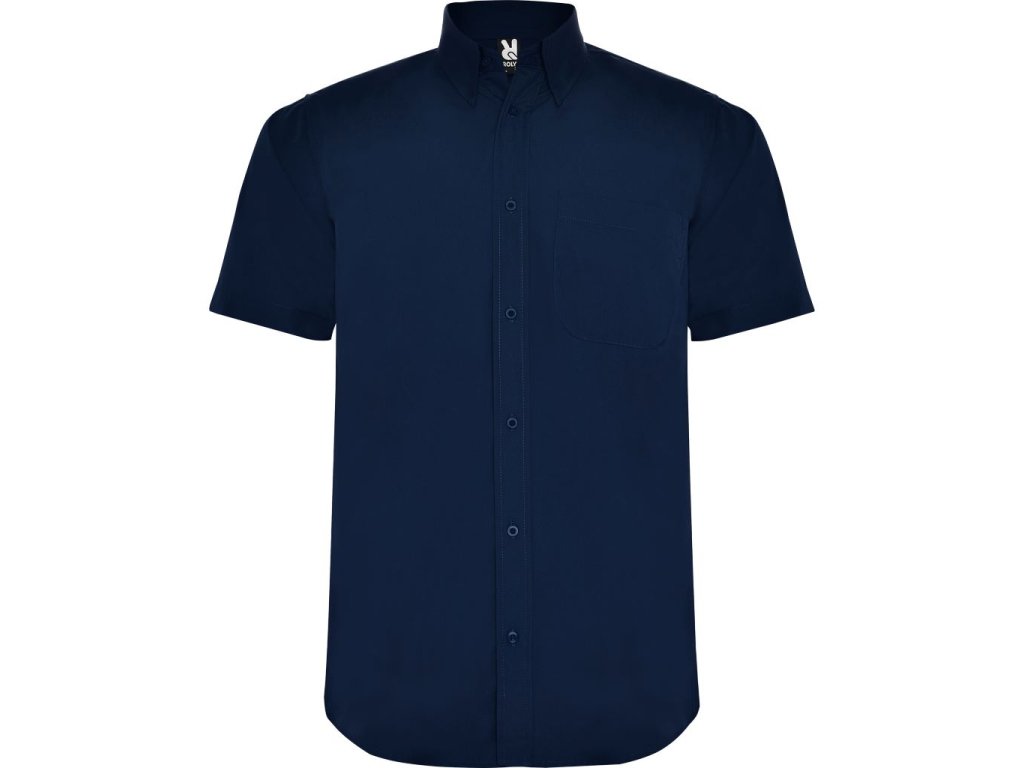 Pánská košile s krátkým rukávem. Klasický stojatý límec. Levá náprsní kapsa, zapínaní na sedm knoflíků v barvě košile.