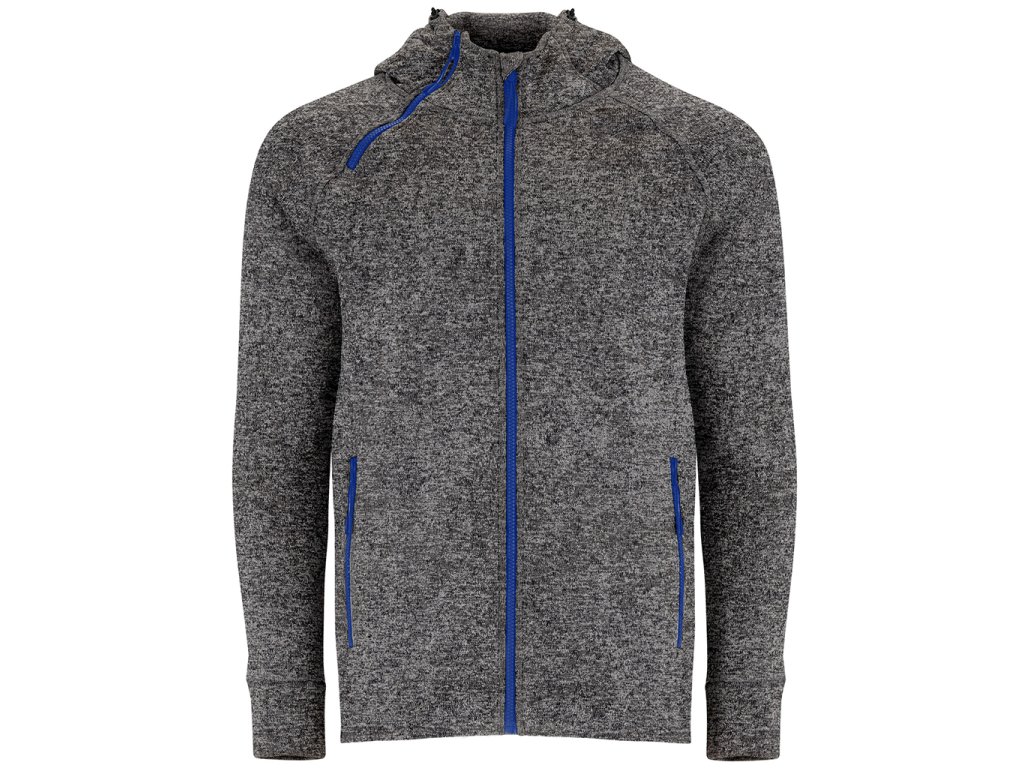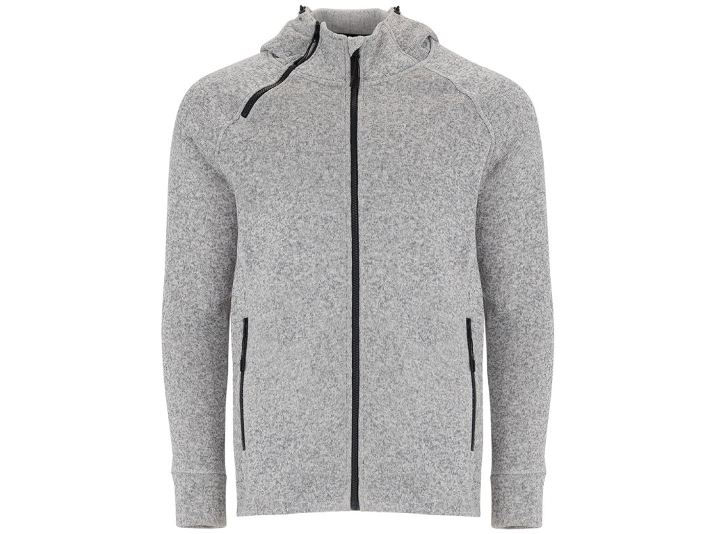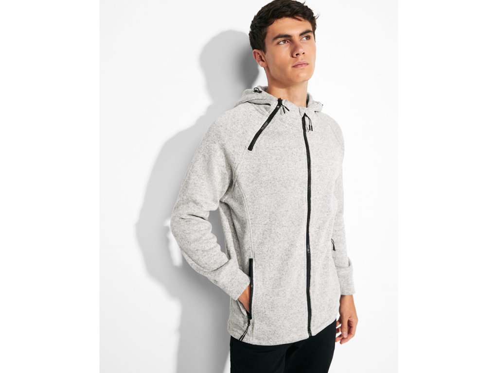 Pletená mikina s kapucí. Zipy jsou ozdobeny designovými táhly. Centrální celorozepínací zip je s chráničem brady. Vysoký límec s designovými nastavovacími prvky a skrytými švy. Druhý dekorativní zip na krku pro snadné otevírání. Dvě přední kapsy na zip. Zadní část delší než přední strana se stahovací šňůrkou. Odnímatelný štítek.