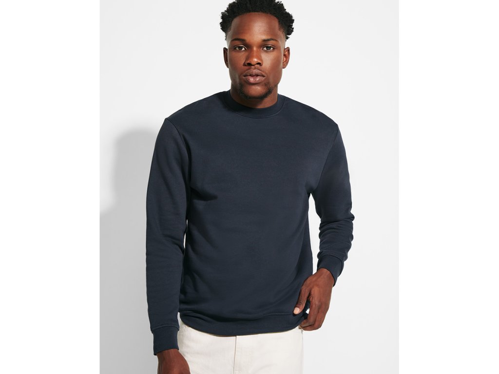 Bavlněná mikina v klasickém střihu a s kulatým průkrčníkem. Průkrčník, manžety a lem z žebrovaného materiálu 1x1. Zesílené kryté švy průkrčníku.Odejmutelná etiketa.