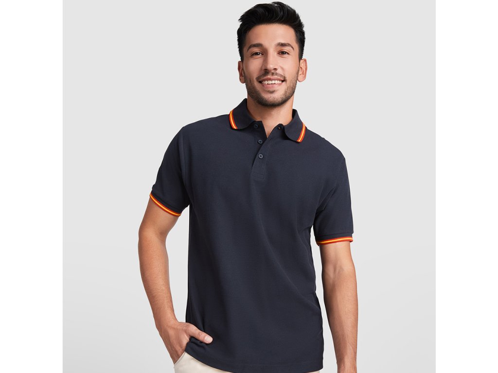 Polokošile s krátkým rukávem, límec a manžety v žakárovém úplete, 3 knoflíky. Zpevněné skryté švy na průkrčníku. Logo vlajky vyšité na zadní straně.