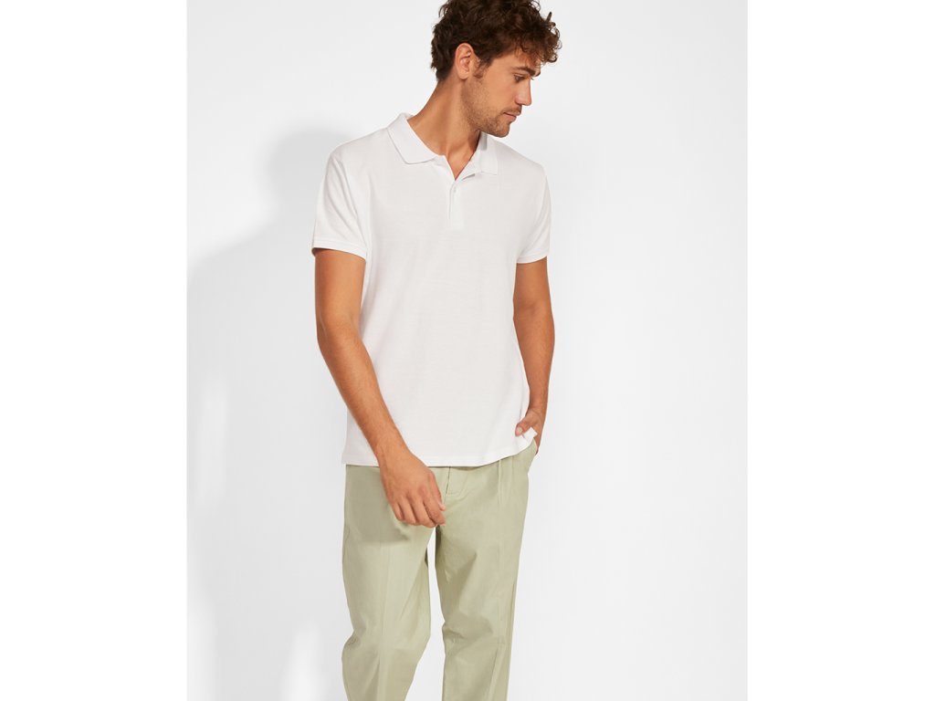 Pánská polokošile s krátkým rukávem z OCS certifikované organické bavlny se zapínáním na dva knoflíky. Límec 1x1 a olemování rukávů v žebrovaném úpletu. Zpevněné skryté švy na průkrčníku, boční rozparky. Boční švy. Součástí je látka na případné našití kapsy. Barva 58 (melange) - složení 85% bavlna/15% polyester