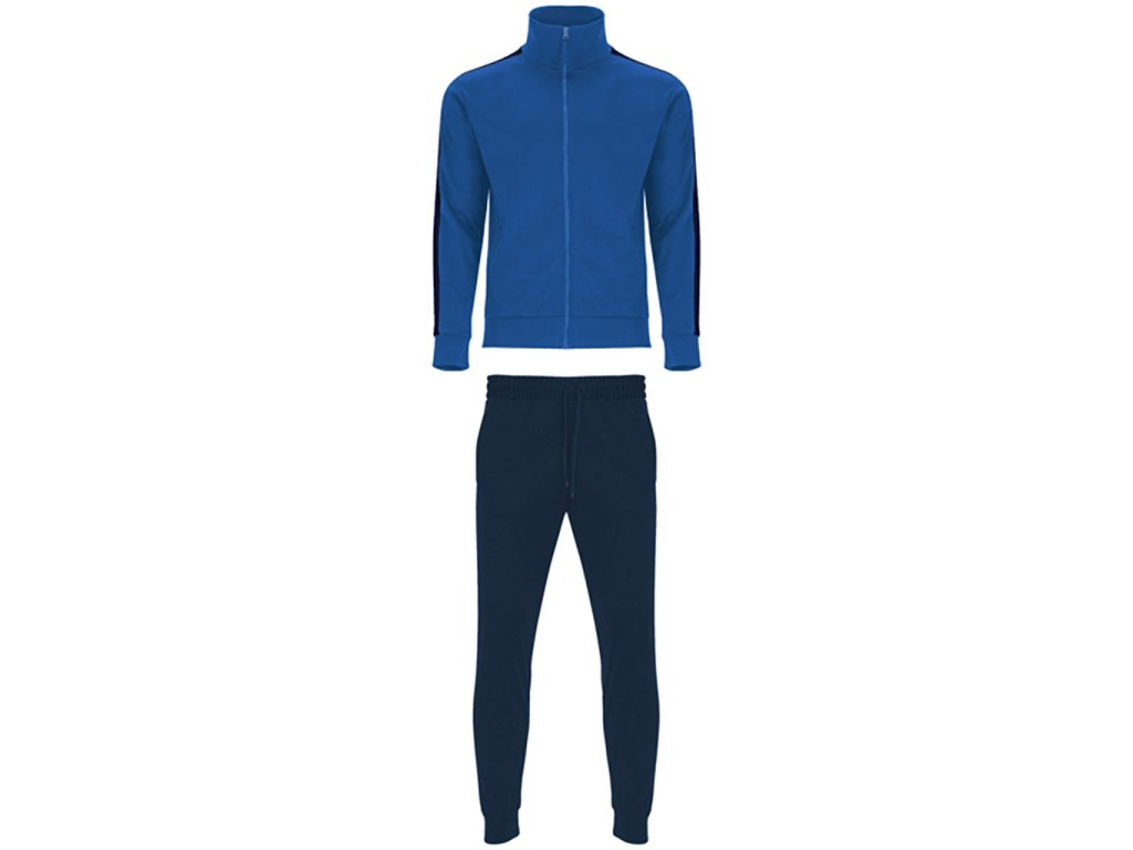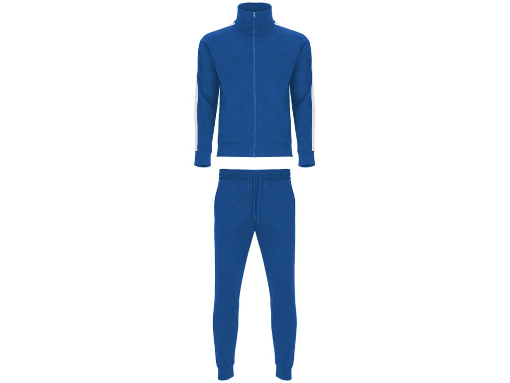 Tepláková souprava - obsahuje mikinu a kalhoty. Souprava obsahuje 1. vysoký límec, 2. Límec, manžety a spodní lem s žebrováním 1x1, 3. Celozip v ladící kombinaci s poutkem, 4. Postranní kapsy mikiny se zapínáním na zip, 5. Kontrastní postranní pruh na mikině i kalhotech, 6. Kalhoty jsou s elastickým pasem a nastavitelnou šňůrkou, 7. Dvě postranní kapsy, 8. Zadní kapsa na zip, 9. Spodní lem s elastickými žebrovanými manžetami 1x1.