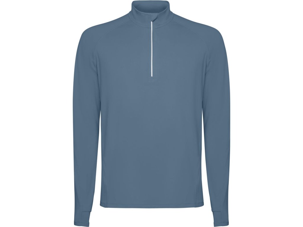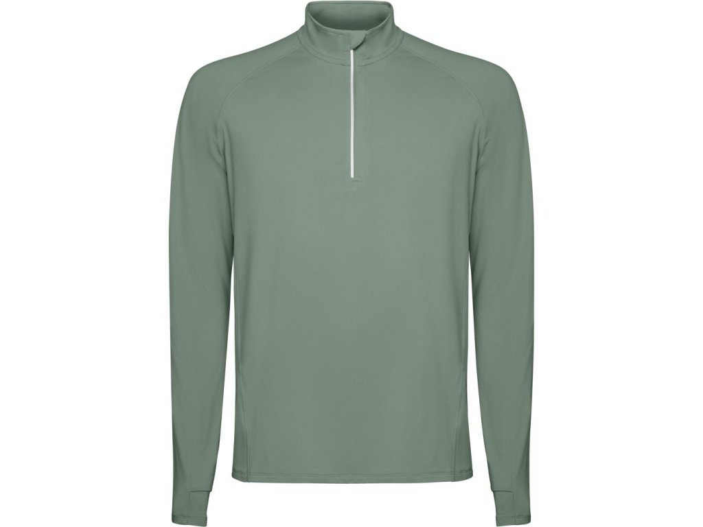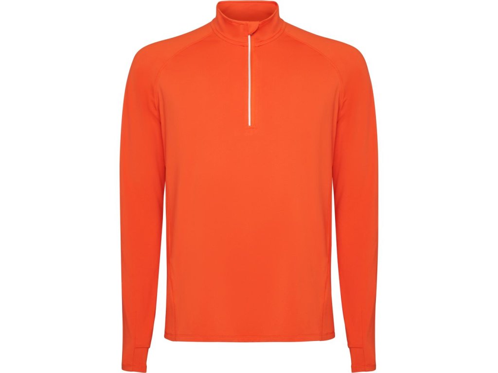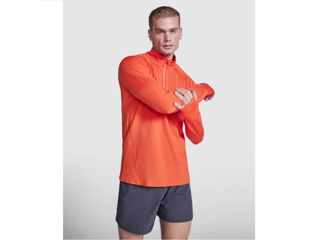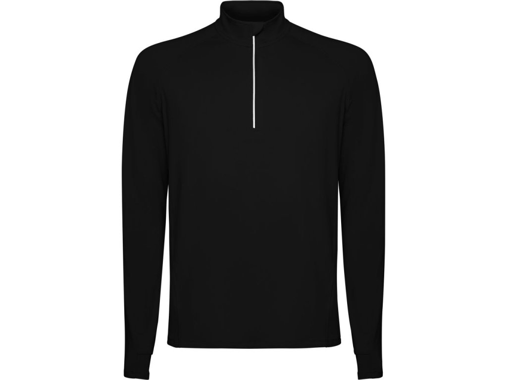 Sportovní raglánová mikina s dlouhým rukávem. Límec s polovičním zipem s obráceným vzorem s reflexním detailem. Zesílené kryty švů. Manžety s otvory na palec. Reflexní detaily na zadní straně. Zadní lem o něco delší než přední. Hřejivá kartáčovaná vnitřní tkanina.