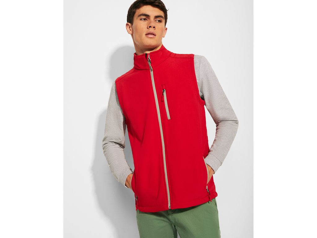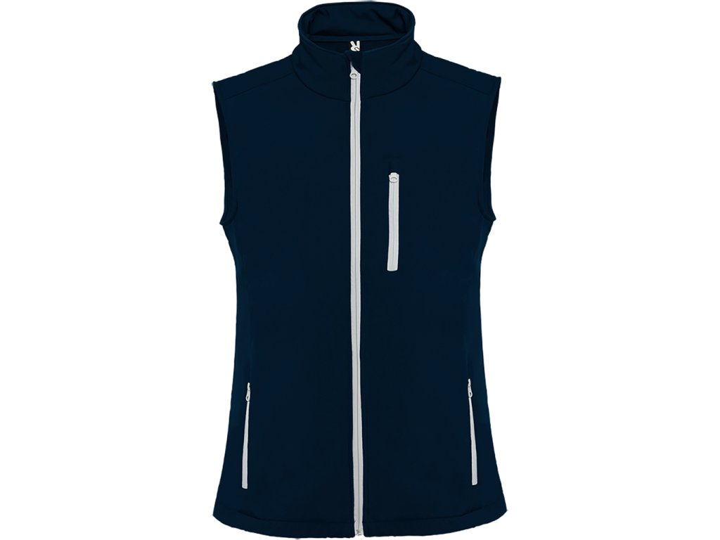 Dvojvrstvá softshellová vesta s kontrastním zipem a krytkou jezdce. Tři kapsy s kontrastním zipem. Dolní okraj se šňůrkou na stahování.