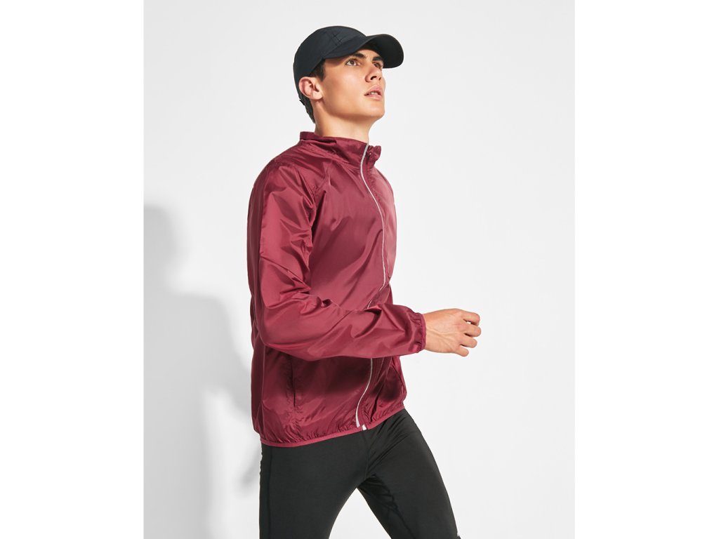 Větrová bunda z lehké funkční látky bez podšívky. Vnitřní strana límce s podšívkou z prodyšné látky a prošitými švy. Obrácený zip s reflexním detailem, ochranou pro bradu a poutkem. Prodyšná látka v podpaží. Přední kapsy na zip. Vnitřní kapsa na uschování oděvu. Manžety a spodní lem s elastickou obrubou. Reflexní detaily na zadním díle. Odnímatelný štítek. Větrovka je odolná proti větru, nepromokavá a prodyšná. Látka má kostkovanou texturu. Duo koncept.