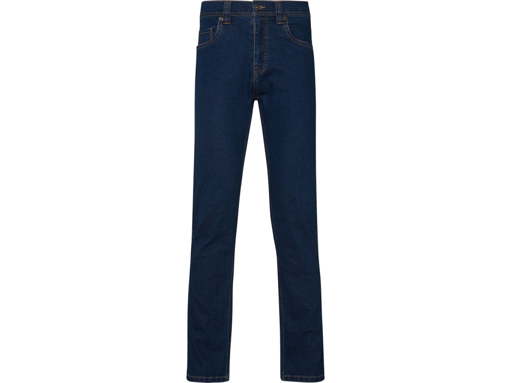 Pánské džíny. Regulérní střih a středně vysoký pas. Pas s pěti poutky. Zapínání na kovový zip. Dvě přední kapsy a kapsa na mince. Dvě zadní kapsy. Polopřiléhavý střih z elastické tkaniny.