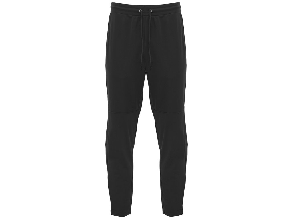 Dlouhé kalhoty úzkého střihu. Kalhoty mají elastický pas s možností nastavení šňůrkami na vnější straně, boční kapsy, příčné švy v polovině stehna, postranní rozparky se zipy na spodním lemu nohavic.