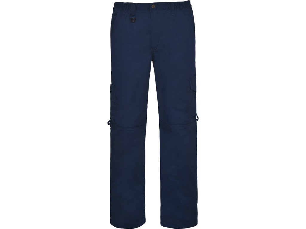 Kalhoty v klasickém rovném střihu. Dvě zadní kapsy a jedna boční kapsa na zip. Dvě postranní kapsy: vlevo kapsička na mobil a vpravo funkční kapsa. Pás s poutky na opasek. Zesílený materiál na kolenou.