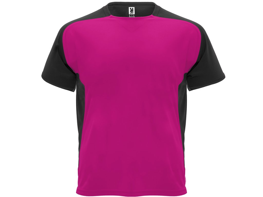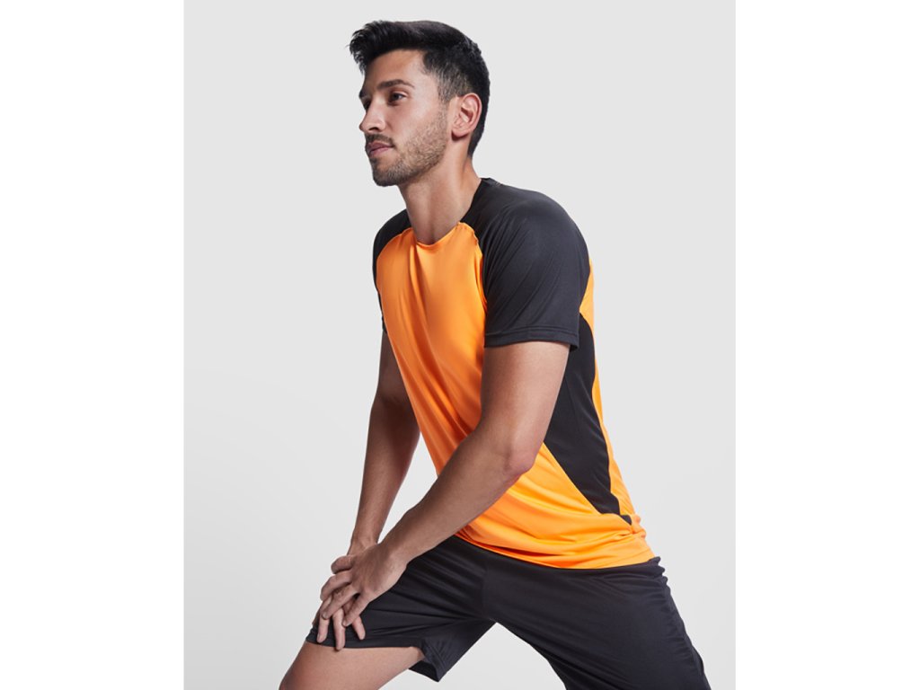 Funkční tričko s krátkým raglánovým rukávem. Kulatý výstřih se zakrytím švů tón v tónu. Kontrastní rukávy a postranní panely.