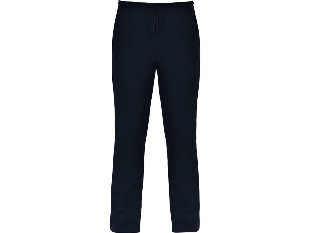 Tepláky rovného střihu se dvěma bočními kapsami a nastavitelným obvodem pasu pomocí stahovací tkaničky. Dostupné i v dětských velikostech.