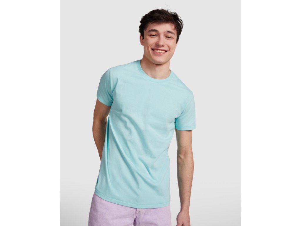 Pánské tričko s krátkým rukávem z organické bavlny, bez bočních švů. Kulatý průkrčník s žebrováním 1x1. Dekorativní prošití na spodním lemu a rukávech. Barva 58 (melange) - složení 85% bavlna/15% polyester