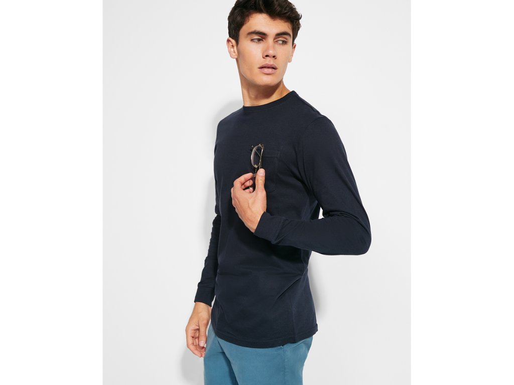 Triko s dlouhými rukávy a kapsičkou na levé straně. Zpevněné skryté švy na průkrčníku a na ramenou. Rukávy jsou zakončeny manžetami, průkrčník je žebrovaný.