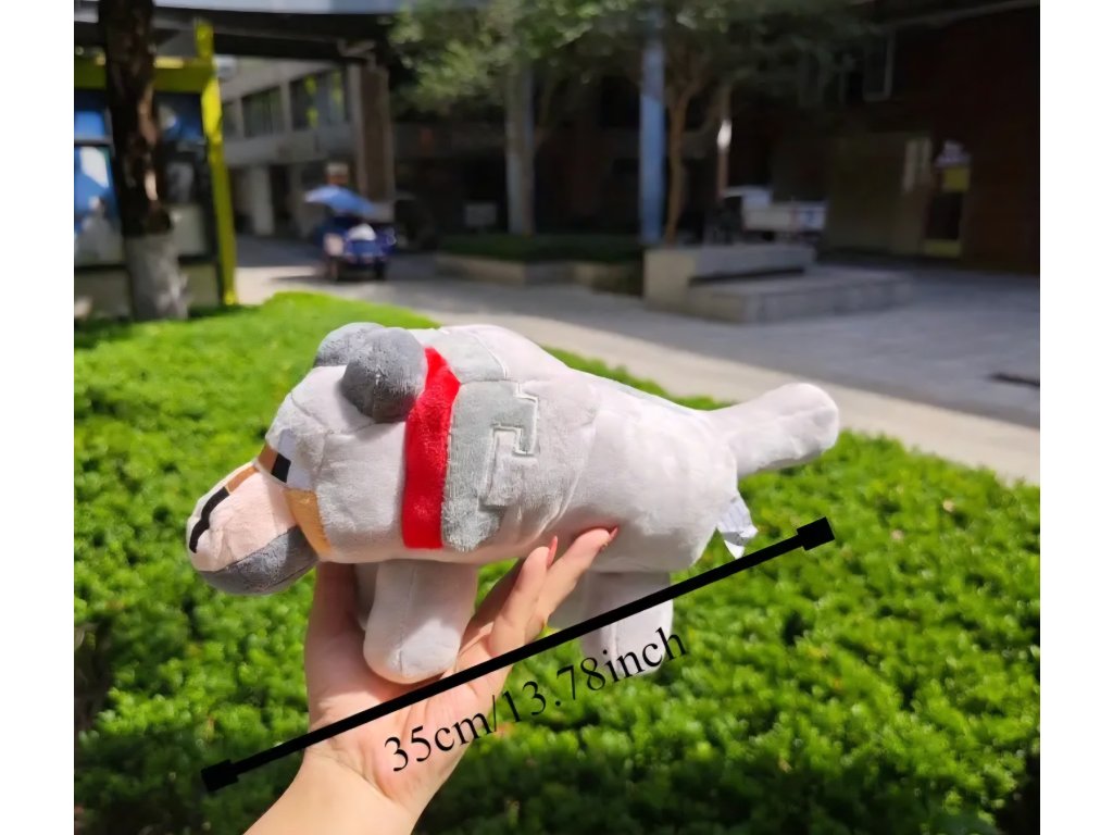Plyšák Minecraft - Vlk Věrný společník na vaše herní i reálná dobrodružství. Tento ochočený plyšový vlk z Minecraftu s červeným obojkem bude hlídat váš pokojíček ve dne v noci. Délka: 35 cm.