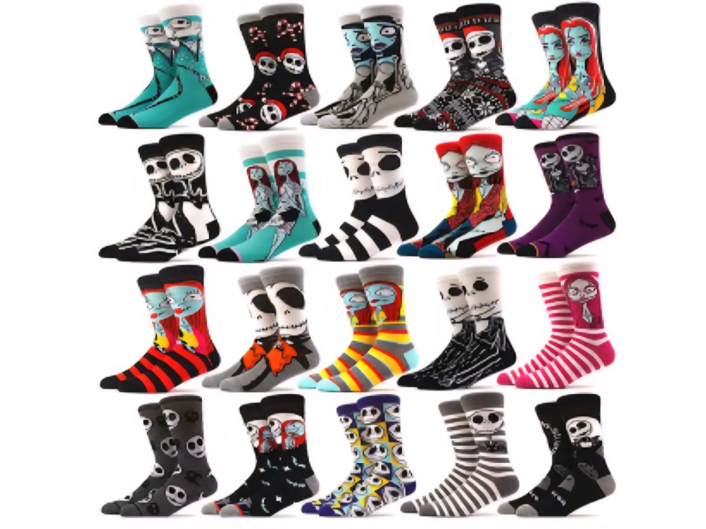 Představujeme kolekci veselých a hravých ponožek, které potěší každého fanouška kultovního filmu Tima Burtona, Ukradené Vánoce (The Nightmare Before Christmas)! Tyto ponožky s hrdiny z Halloweentownu, Jackem Skellingtonem a Sally, jsou skvělým doplňkem pro každodenní nošení, pro tematické akce, nebo jako originální dárek.