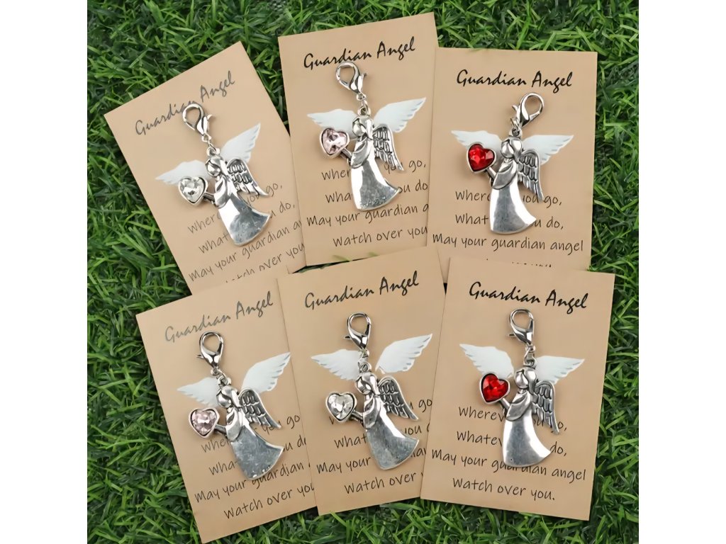 Každý andílek je precizně zpracován z kovu stříbrné barvy, má jemná bílá křídla a v rukou drží třpytivé srdíčko. Díky praktické karabince ho lze snadno a bezpečně připnout na klíče, kabelku, batoh, peněženku nebo třeba na zpětné zrcátko v autě.