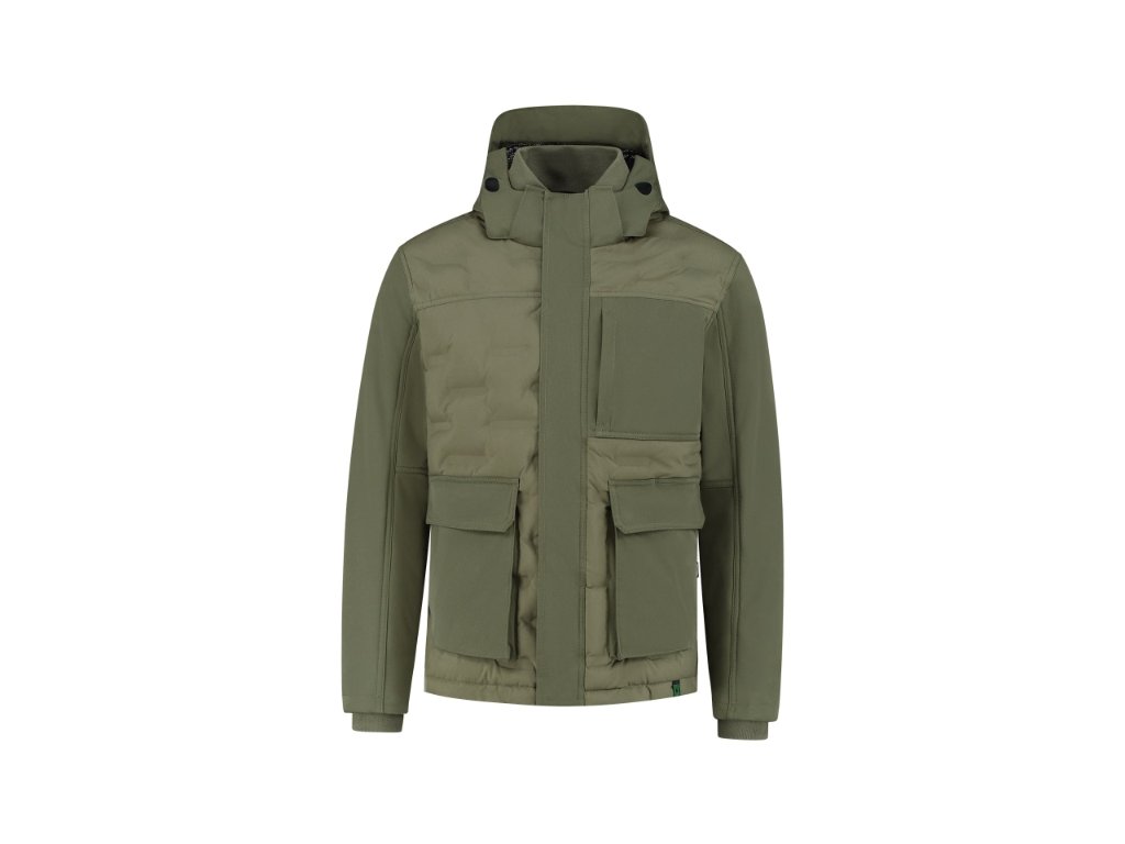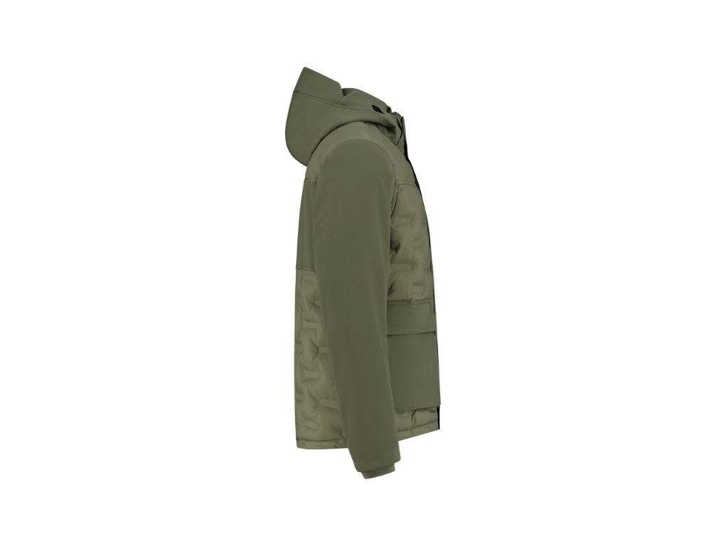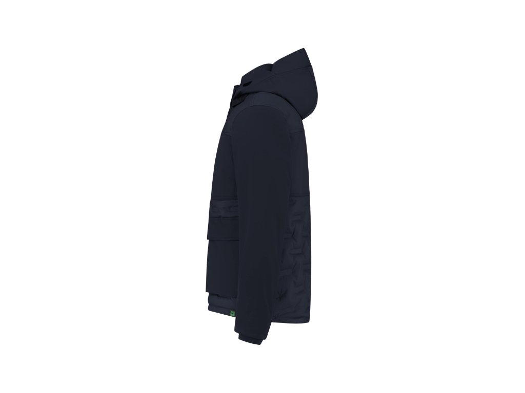 dvojité přední kapsy, horní měchová s klopou a boční na zip