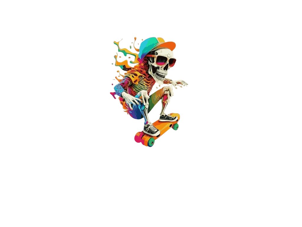 Stylové dámské triko s originálním motivem skejtující kostry v duhových barvách. Buďte trendy a ukažte svůj jedinečný styl!