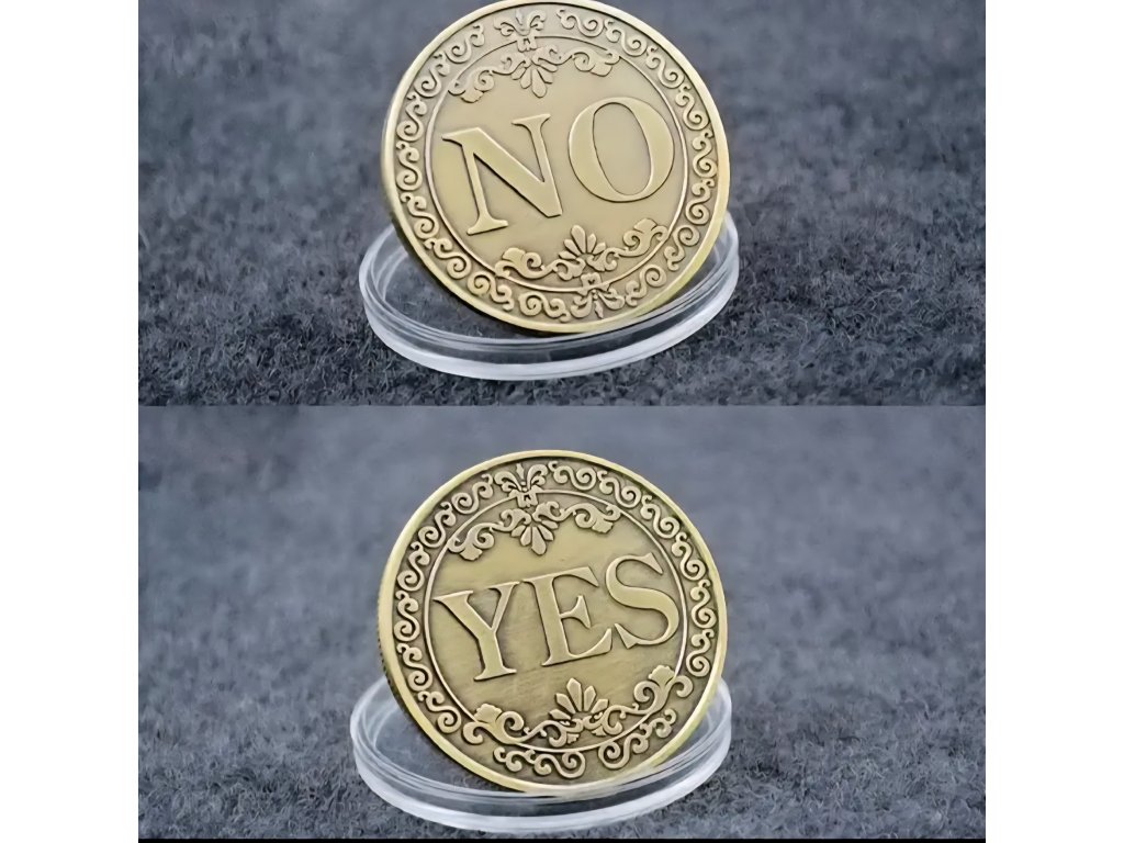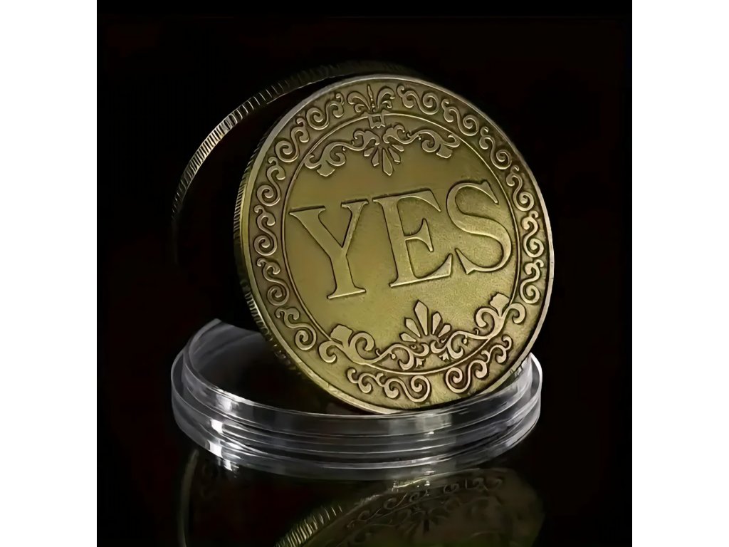 Nejedná se o žádnou lehkou hračku. Tato mince je vyrobena z kvalitního kovu, je silná 3 mm a má příjemnou váhu, která podtrhuje její prémiový charakter. Každá strana nese jasný nápis "YES" (ANO) nebo "NO" (NE) s krásným, detailně vyraženým ornamentálním zdobením.