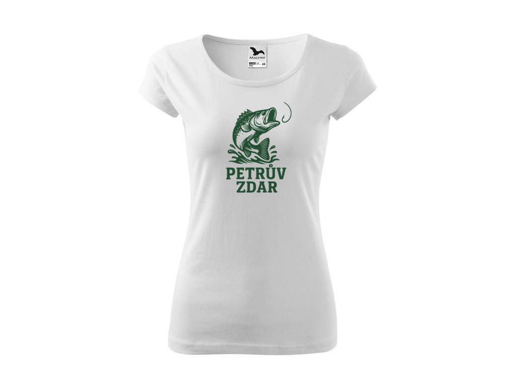 Stylové dámské triko s motivem chycené ryby a nápisem "Petrův zdar". Ideální pro všechny milovnice rybaření!