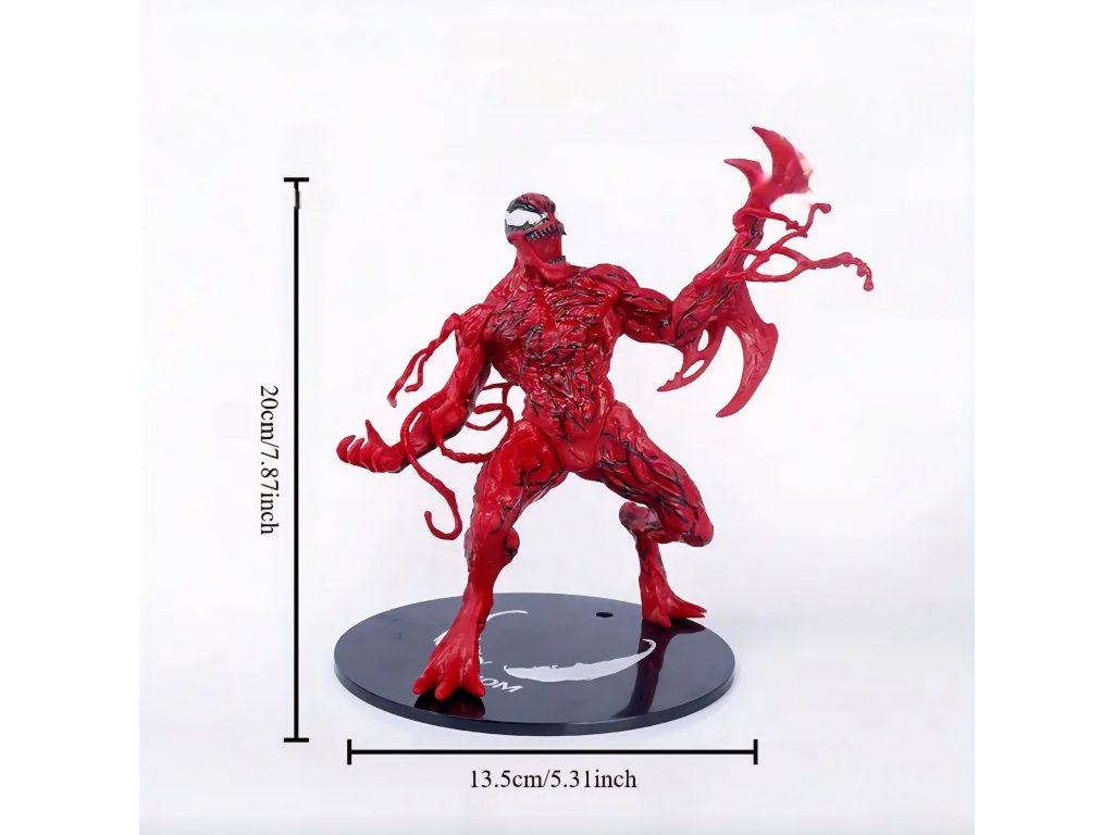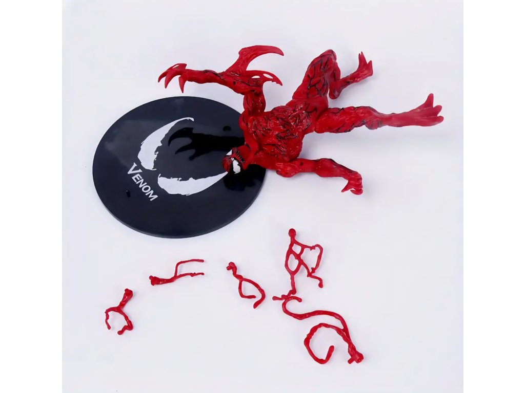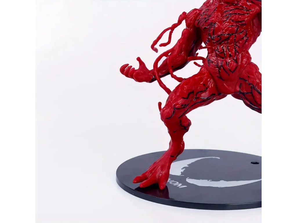 Soška stojí na stabilním černém podstavci s logem Venom, což z ní činí ideální kousek pro vystavení na poličce nebo stole. Navíc, díky přiloženým oddělitelným úponkům si můžete vzhled Carnage částečně přizpůsobit.