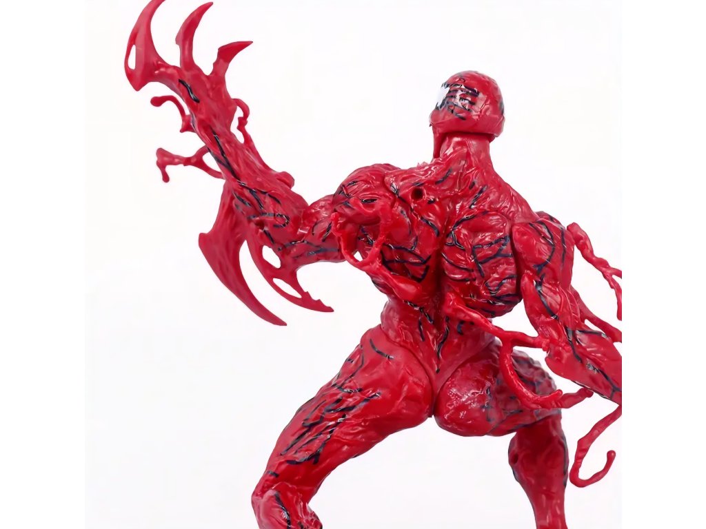 Extrémně dynamická póza: Zachycuje Carnage v plném pohybu a agresi.