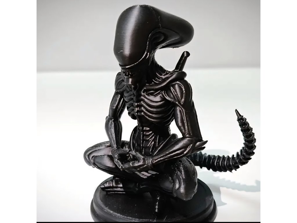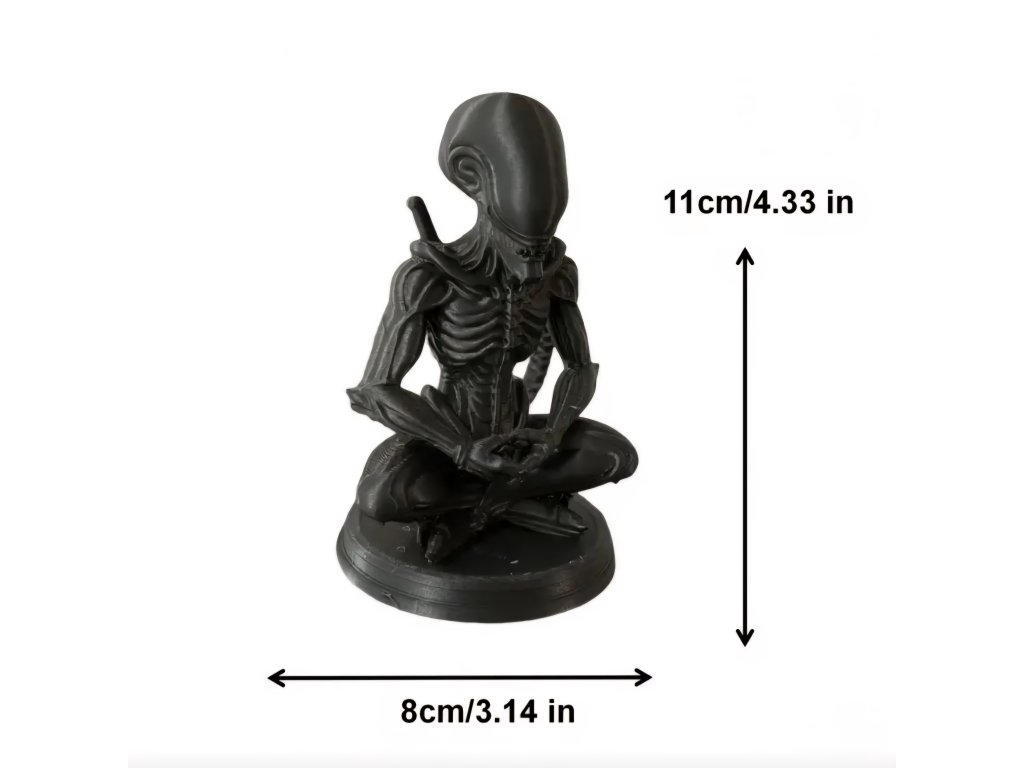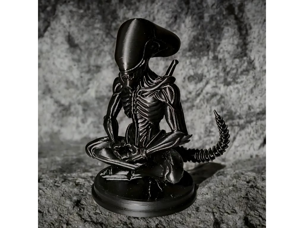 Unikátní sběratelská figurka pro všechny fanoušky sci-fi a hororu. Ikonický Vetřelec (Xenomorph) v nečekaně klidné, meditující póze. Tato soška je vyrobena moderní technologií 3D tisku z kvalitního a odolného plastu v černé barvě. S výškou 11 cm je ideálním doplňkem na stůl, poličku nebo do vitríny.