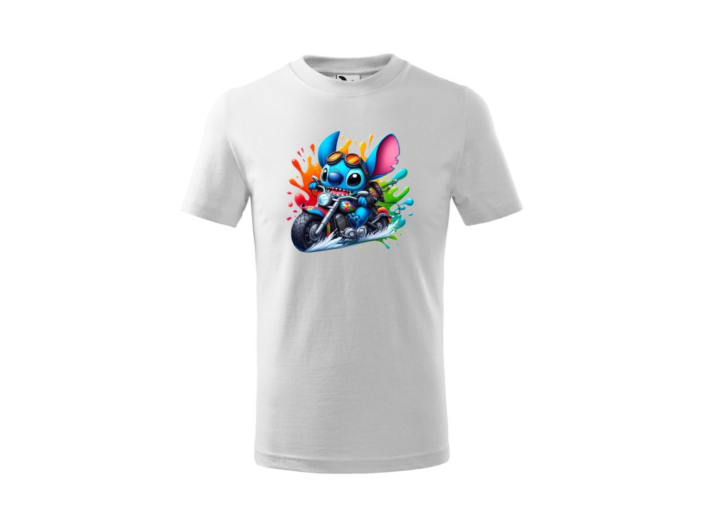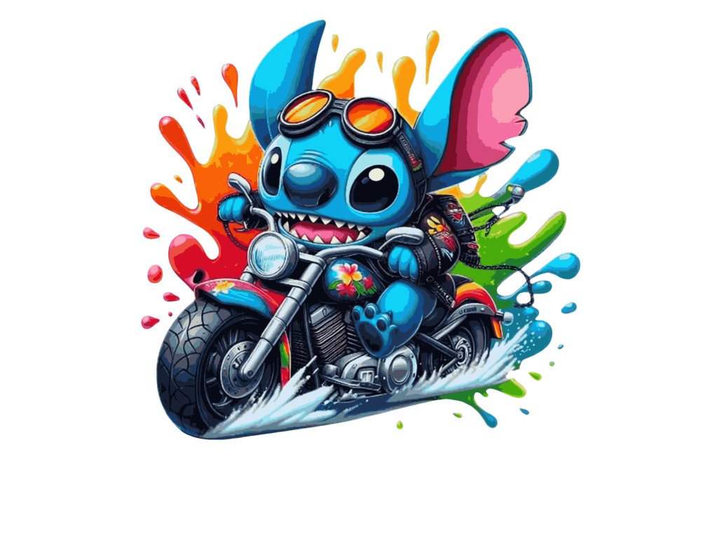 Stylové tričko s roztomilým Stitchem na motorce – perfektní pro všechny fanoušky Disney a motorkářského stylu. Ukažte světu svou jedinečnou osobnost!