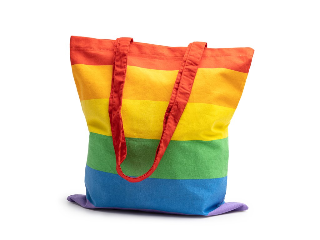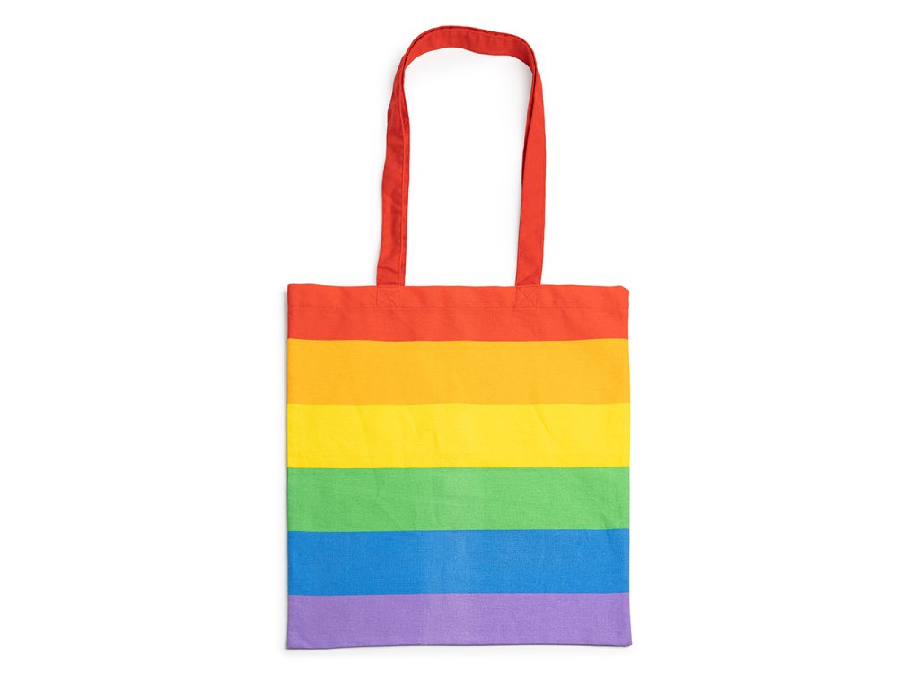 Vícebarevná tote bag ze 100% Fairtrade bavlny (180 g/m²), se zesílenými 70 cm dlouhými uchy.