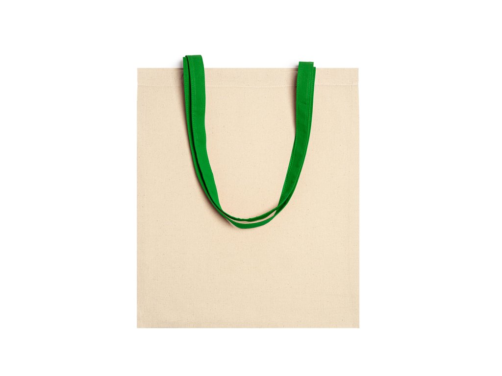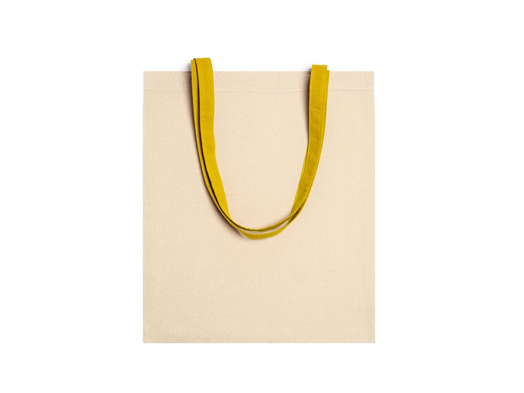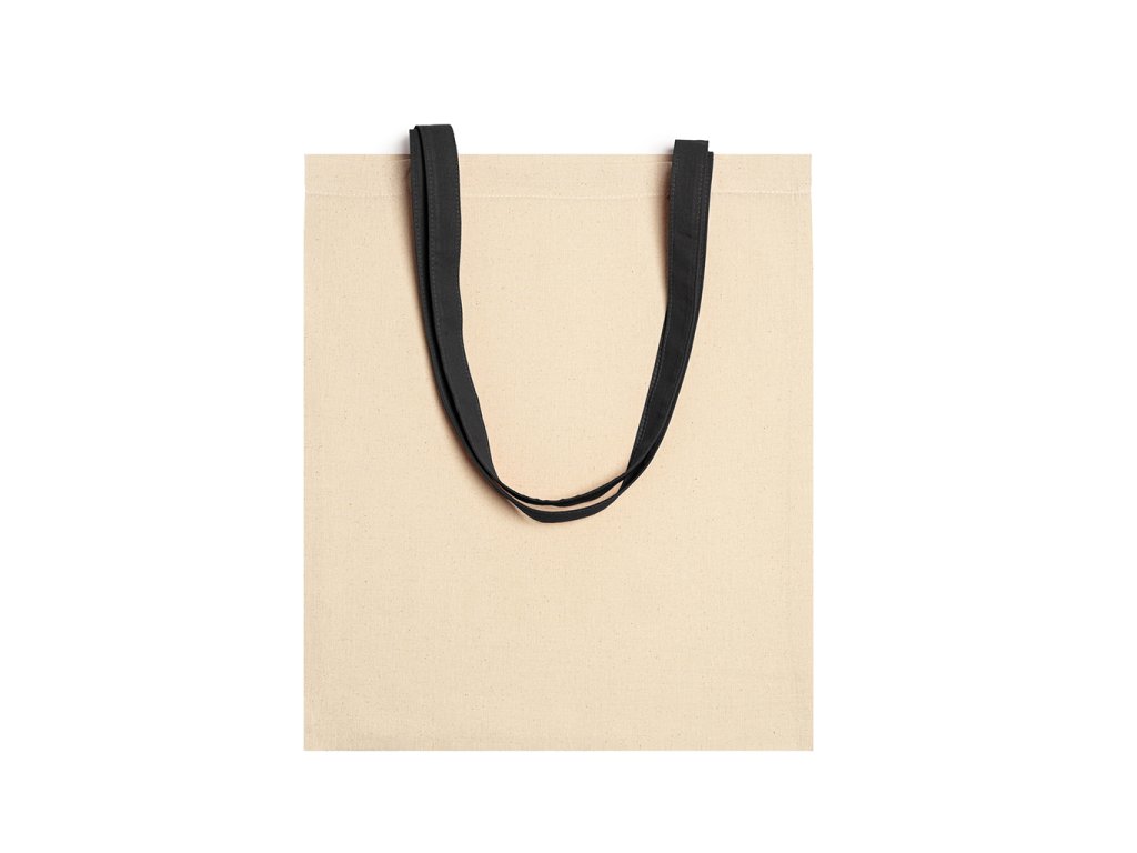 Taška ze 100% bavlny o gramáži 105 g/m² s barevnými uchy dlouhými 70 cm.