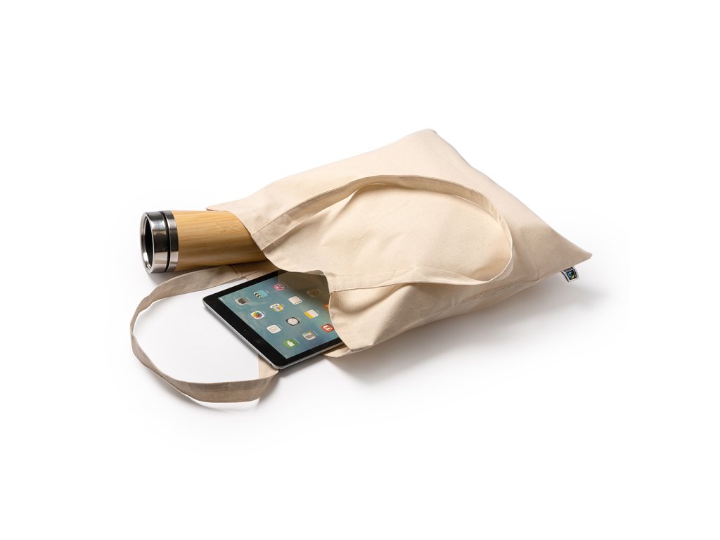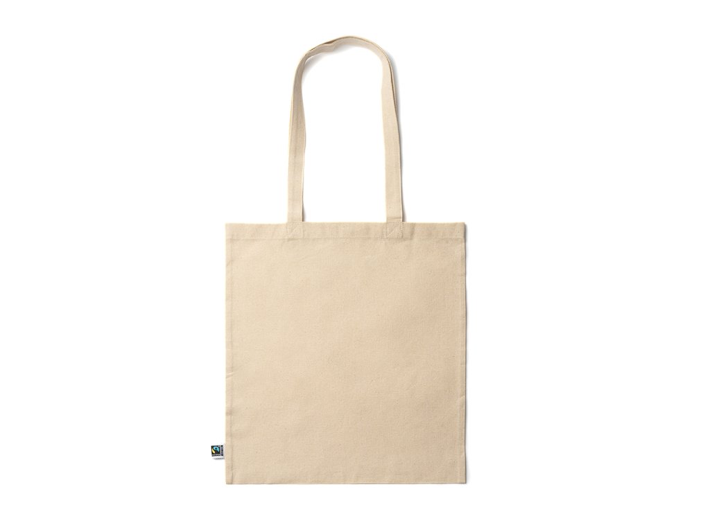 Tote bag ze 100% Fairtrade bavlny (180 g/m²), se zesílenými 70 cm dlouhými uchy.