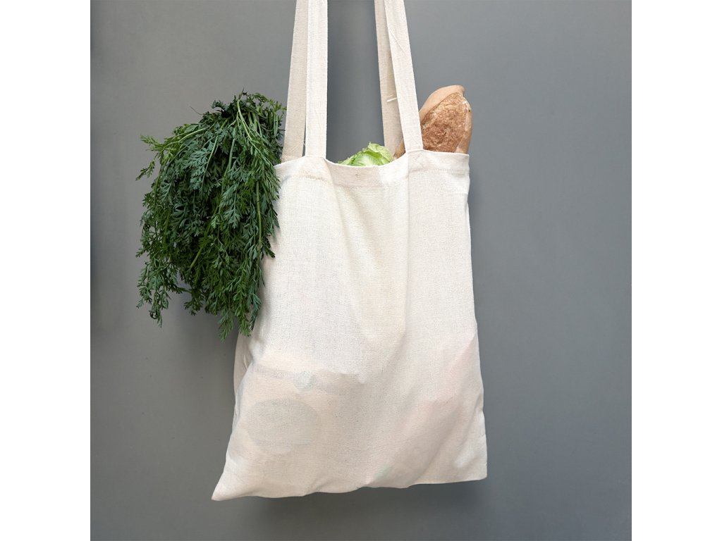 Šitá nákupní taška ze 100% bavlny s praktickými zesílenými uchy o délce 70 cm. 180 g/m².