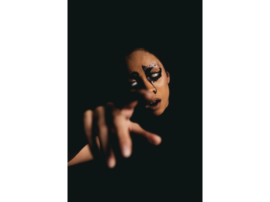 Pro ty, kdo se nebojí vyniknout. Toto tričko je plátnem pro uhrančivou uměleckou fotografii, na níž se z absolutní tmy vynořuje postava s dramatickým make-upem a prázdným pohledem. Ruka natahující se k vám vytváří silný a nezapomenutelný dojem. Noste umění, které má sílu a tajemství.