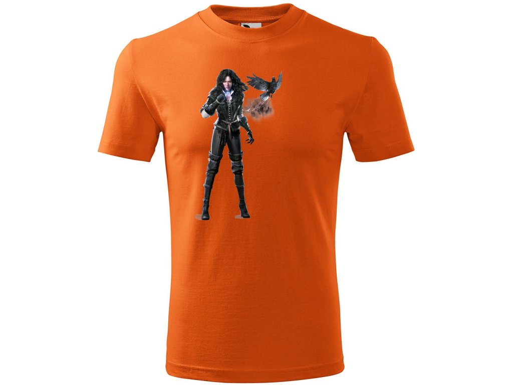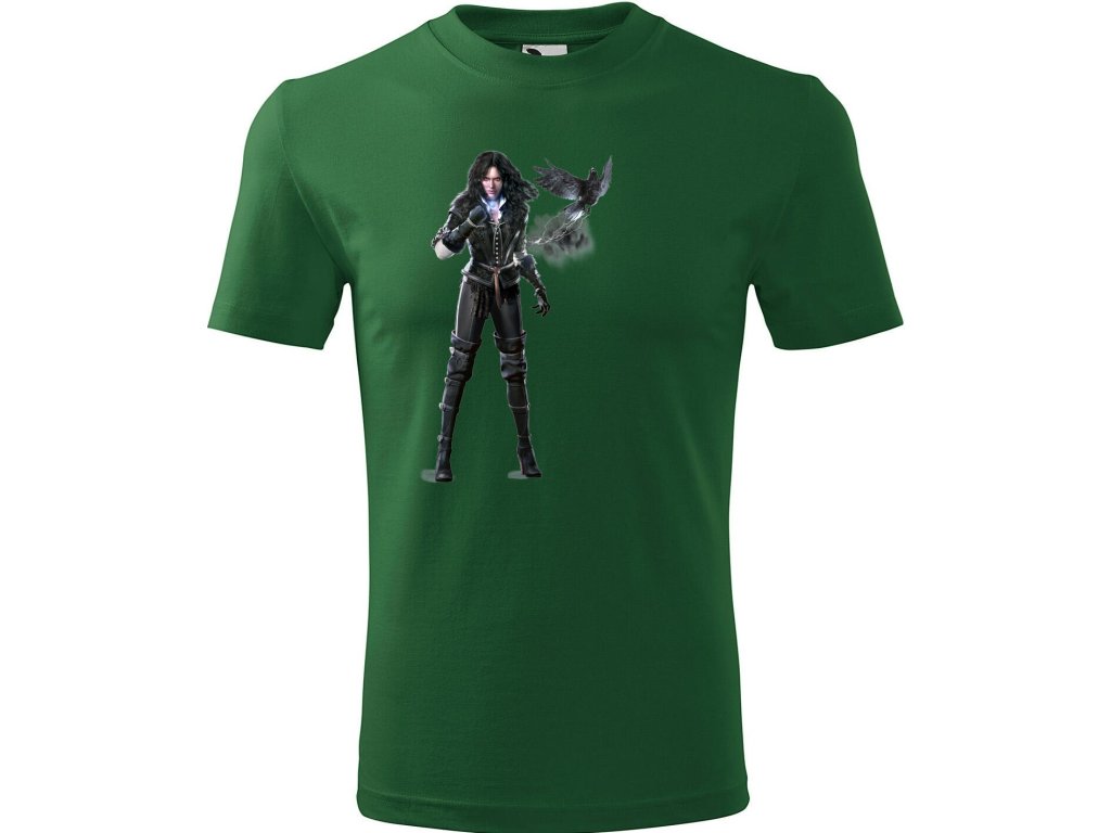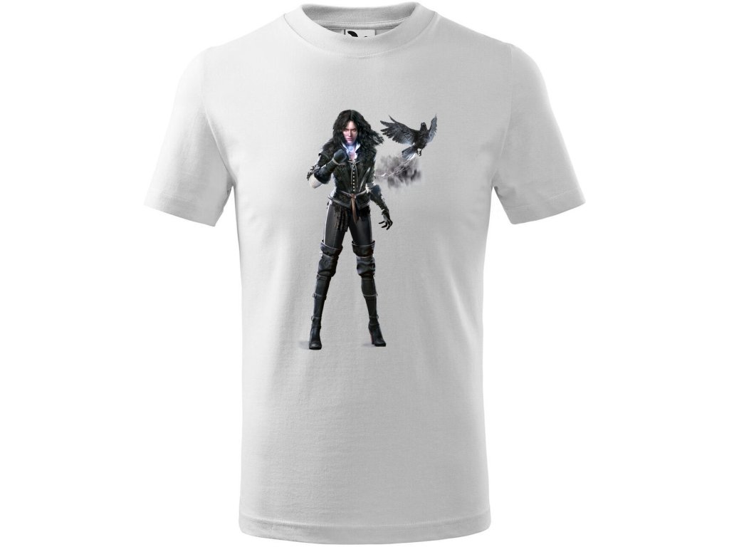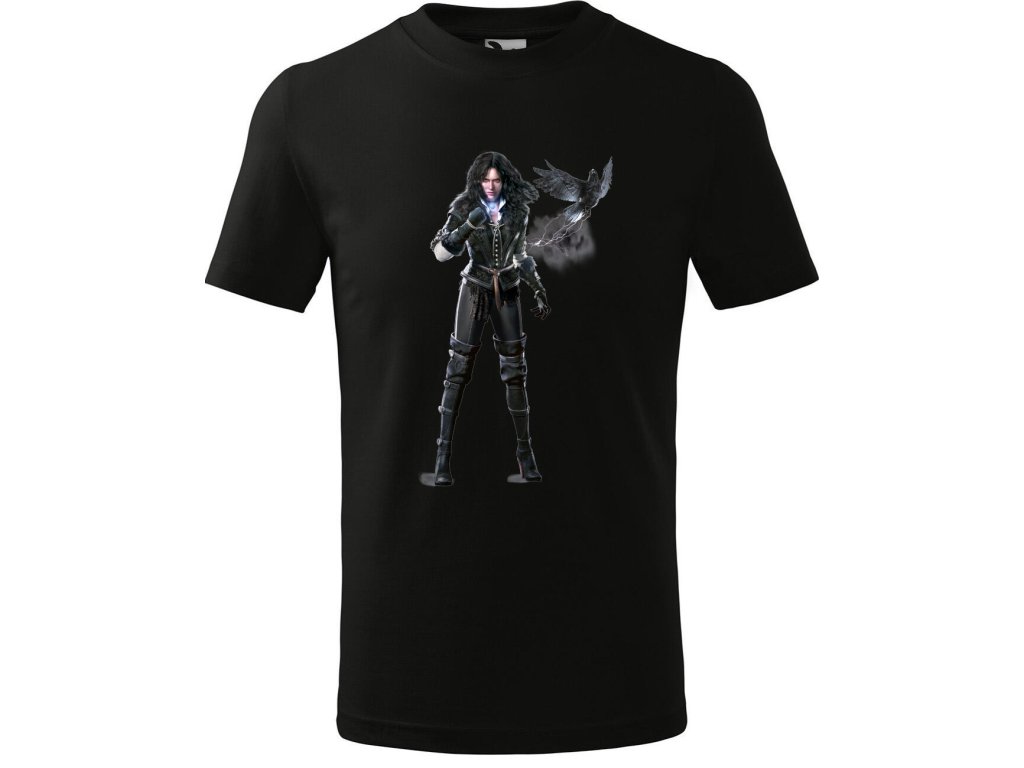 Unisex tričko "Havraní Čarodějka" - Yennefer Nechte se okouzlit mocí Yennefer z Vengerbergu. Toto stylové tričko s potiskem mocné čarodějky a jejího havrana je perfektní pro všechny milovníky magie a tajemna.