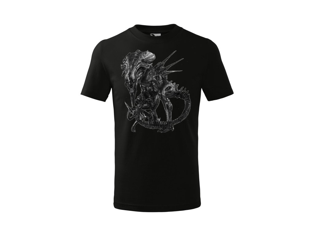 Pokloňte se Jejímu Veličenstvu! Toto tričko je poctou jedné z nejikoničtějších, největších a nejděsivějších postav v celé historii sci-fi hororu – Královně Vetřelců. Je to nezbytný kousek pro každého fanouška filmu Vetřelci a symbol ultimátní síly a mateřského instinktu.